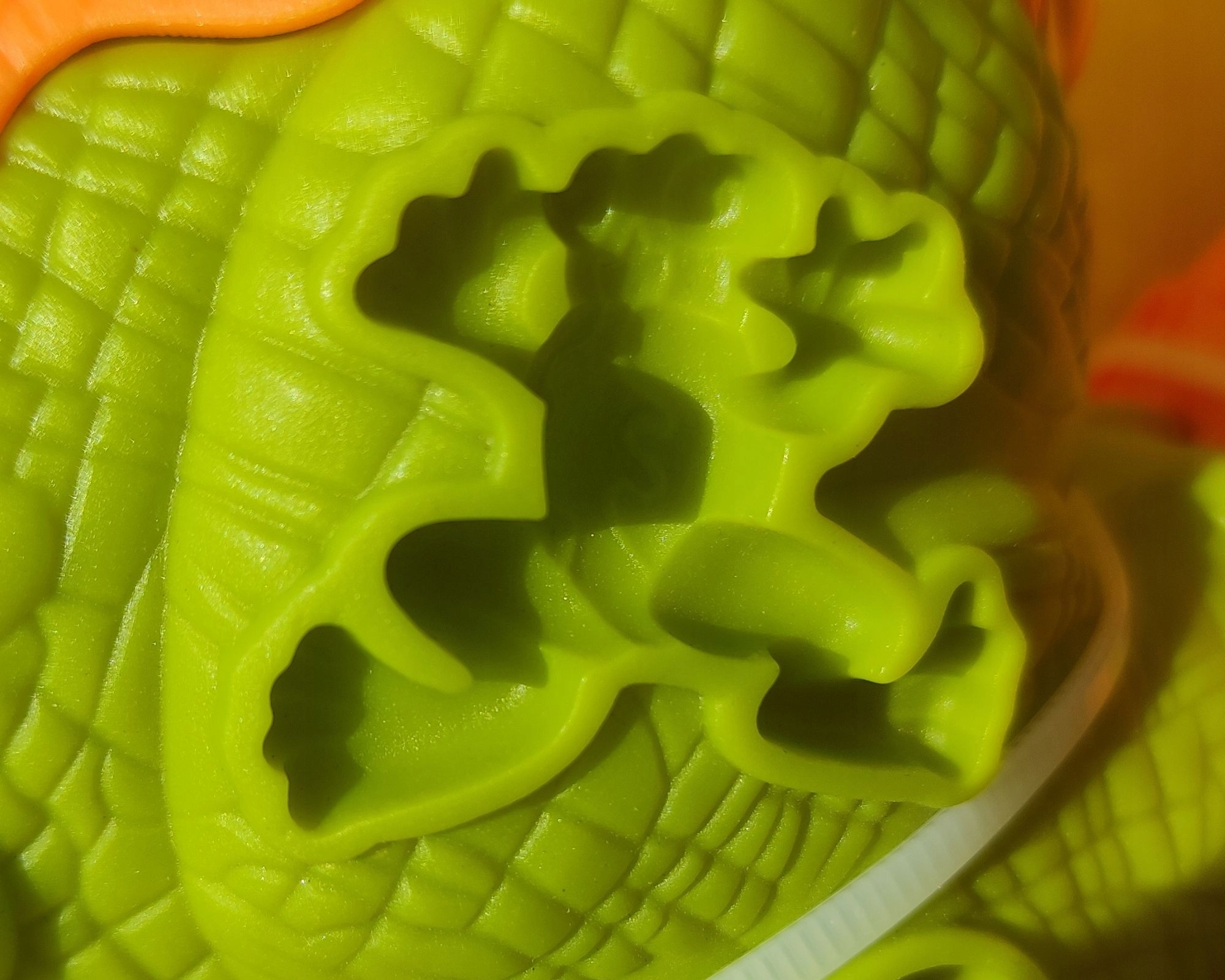 У динозавра рухома щелепа і спина з хвостом. З їх допомогою ваша дитина може створювати різні фігури, в тому числі язик або виступи. Нога T-Rex і основа мають додаткові форми, які дозволяють організовувати подальші творіння . Окрім ліплення з тіста, динозавр чудово працює як іграшка.