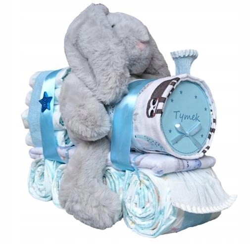 - 34 підгузки Pampers - розмір 2 (4-8 кг). Інші розміри підгузників доступні в інших наших пропозиціях. Ми також можемо виготовити паровозик із пелюшок Dada.