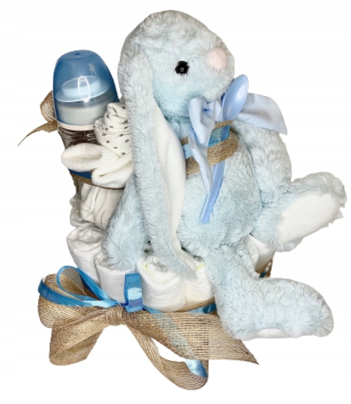 ПРИМІТКА: Є можливість змінити колір бантів на білий (наприклад, у випадку хрещення) - повідомте про це в повідомленні. Можливість створити набір для дівчинки - тоді пляшка і стрічка будуть рожеві, а не блакитні, а ложечка світло-сіра.