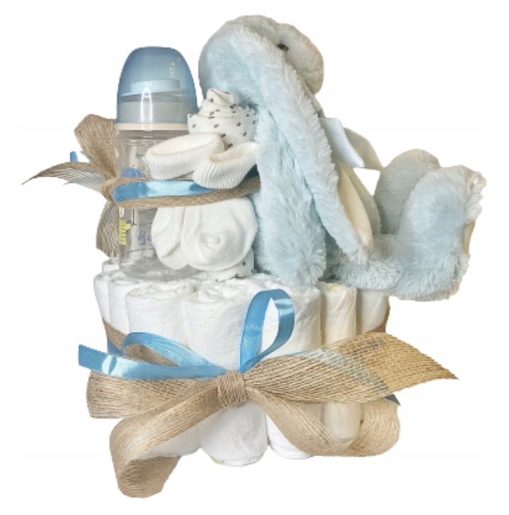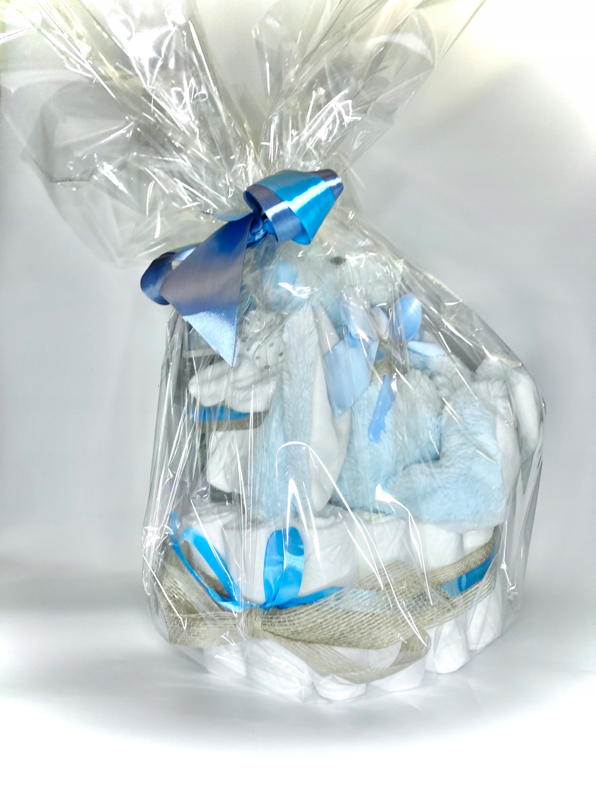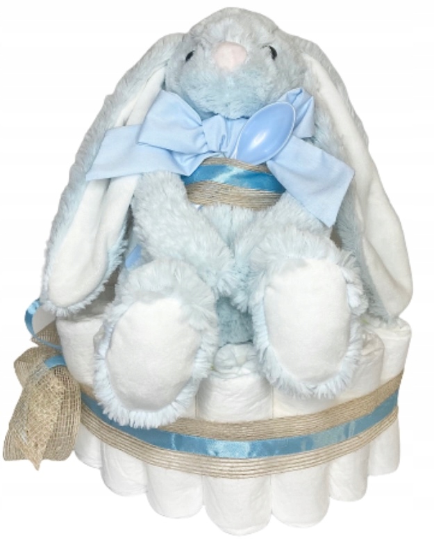 * ложка - блакитна або світло-сіра, ідеальна для подачі перших каш, супів і десертів;* стрічки - джут і атлас; вкладається в торт, а також прикрашає целофан (після обгортання торта) в самому верху;
