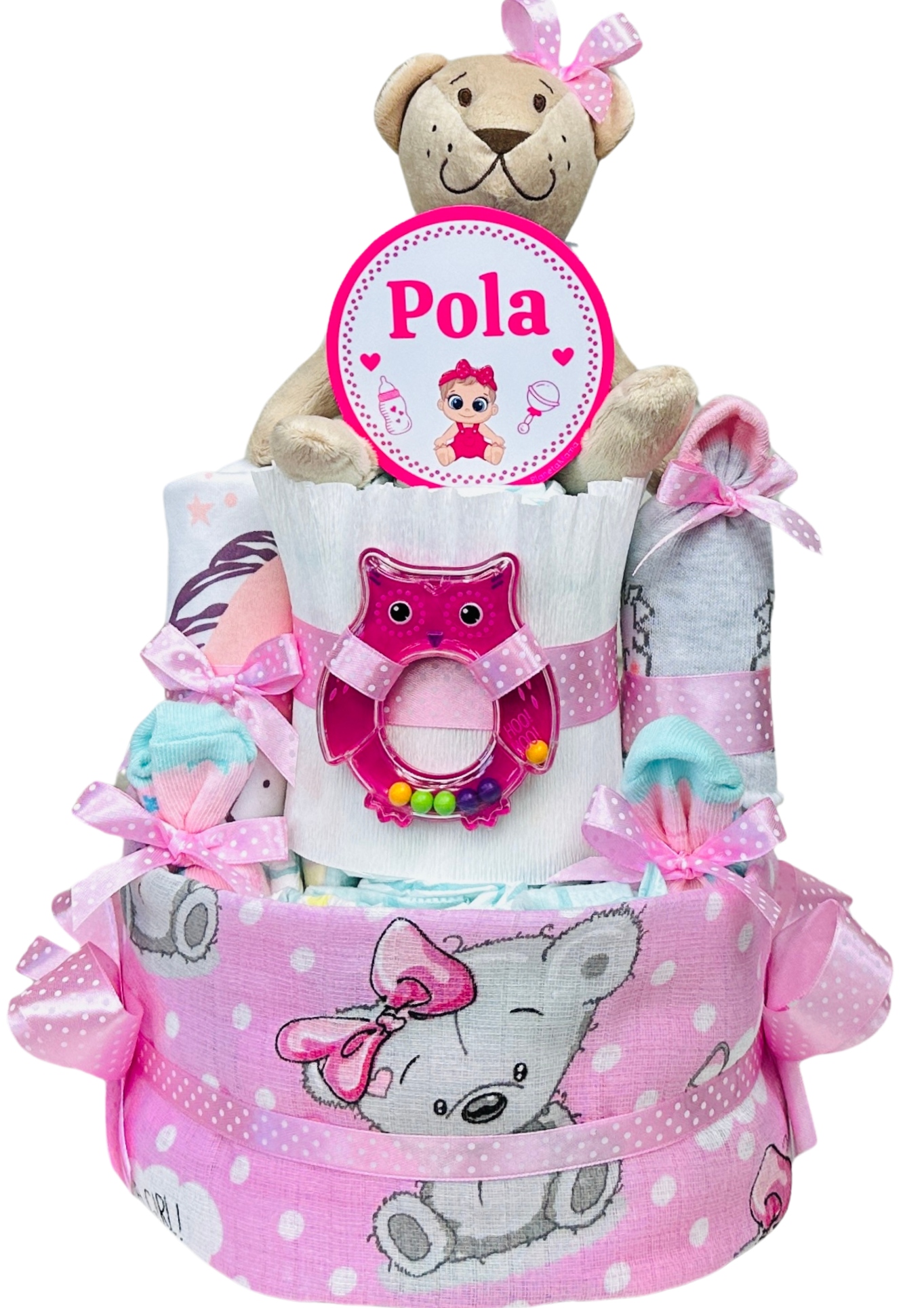 Торт з памперсів - ідеальний подарунок на народження дитини, хрещення або інші свята, такі як свято дитини, день народження, іменини, перший візит до дитини, рік і т.д. Розібравши подарунок, все підгузки та аксесуари корисні та необхідні малюкові як і батькам.