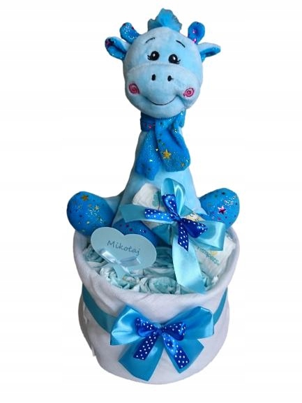 На цьому аукціоні ми пропонуємо гарний торт з пелюшок). Додатково м'який плюшевий ЖИРАФ і біла матерчата пелюшка.