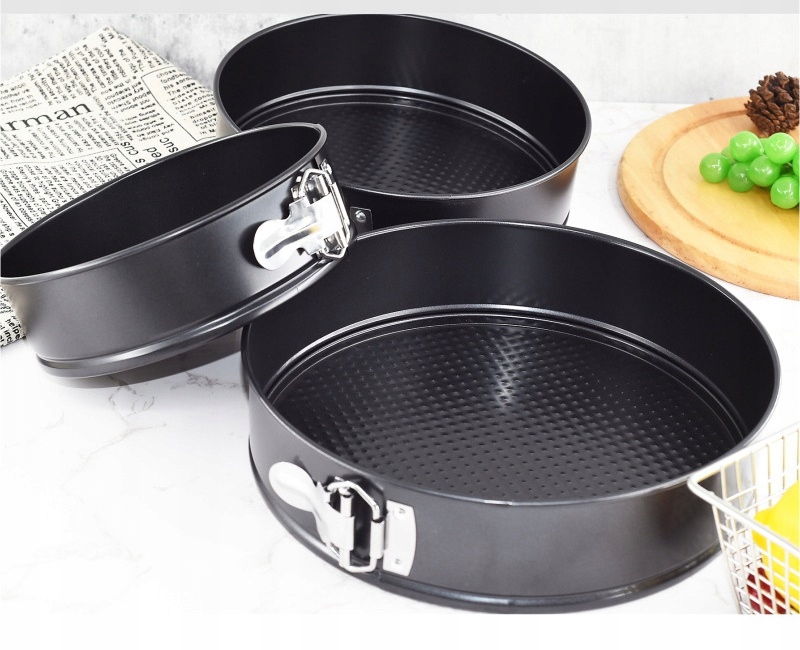 знімні сторони полегшують видалення тіста без пошкоджень. Знімне дно може бути успішним для подачі випічки на столі. Використовуйте силіконові або дерев’яні кухонні інструменти - лопатки або шпатеї. Форми стійкі до високих температур.