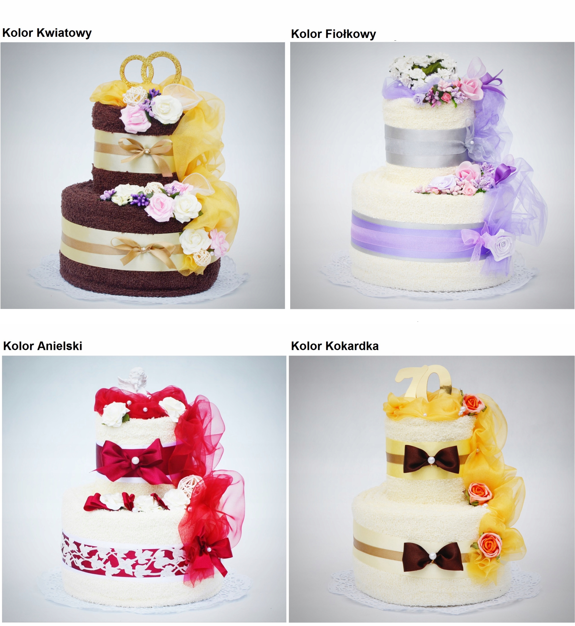Ми можемо виготовити кожен торт у будь-якому кольорі рушників - палітра кольорів доступна нижче. Ми можемо додати будь-яку добавку до верхівки торта.
