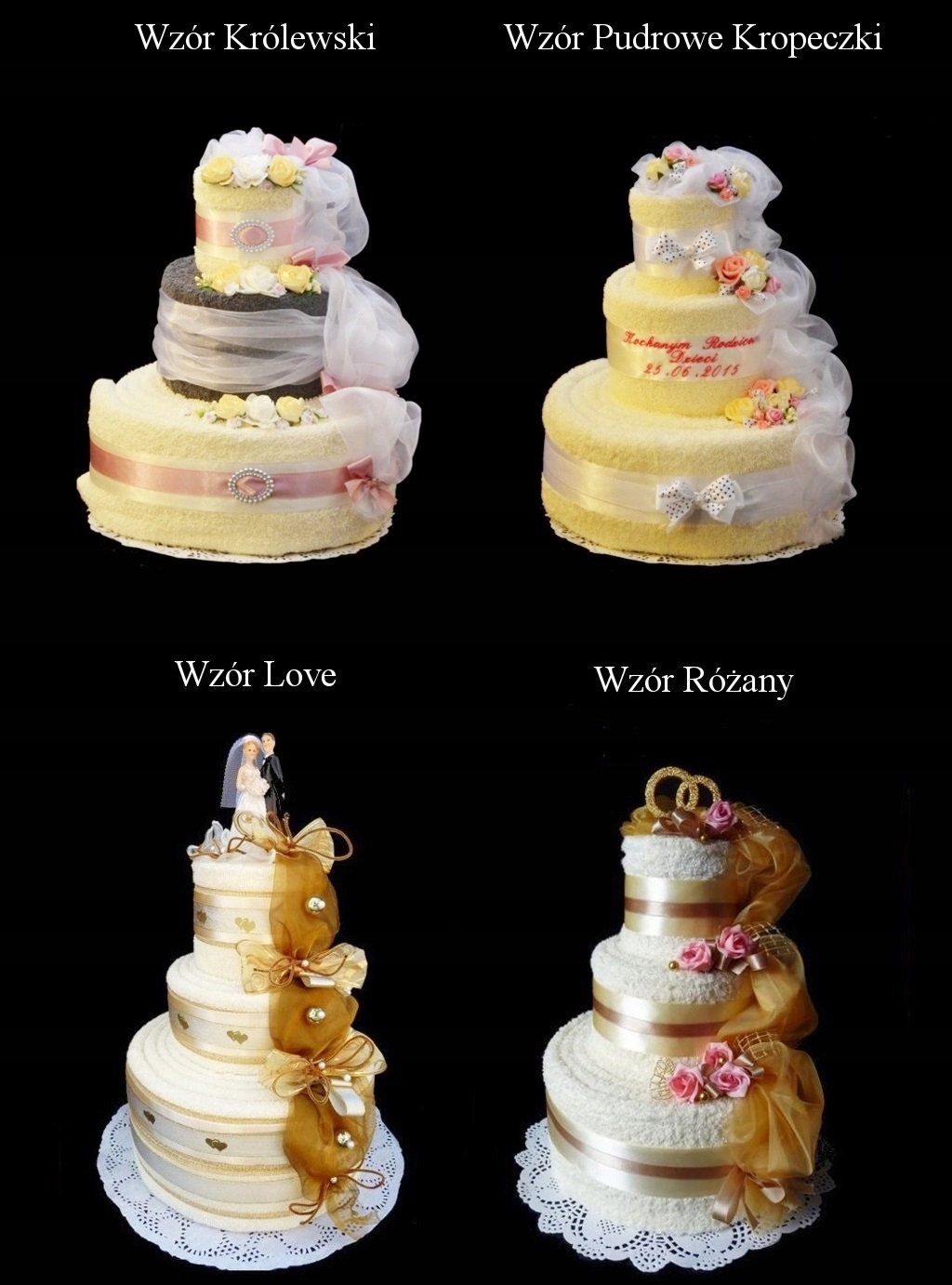 Гарний та оригінальний подарунок на весілля та ювілей - практичний та елегантний набір з 4-х рушників у формі торта з багатим квітковим декором.