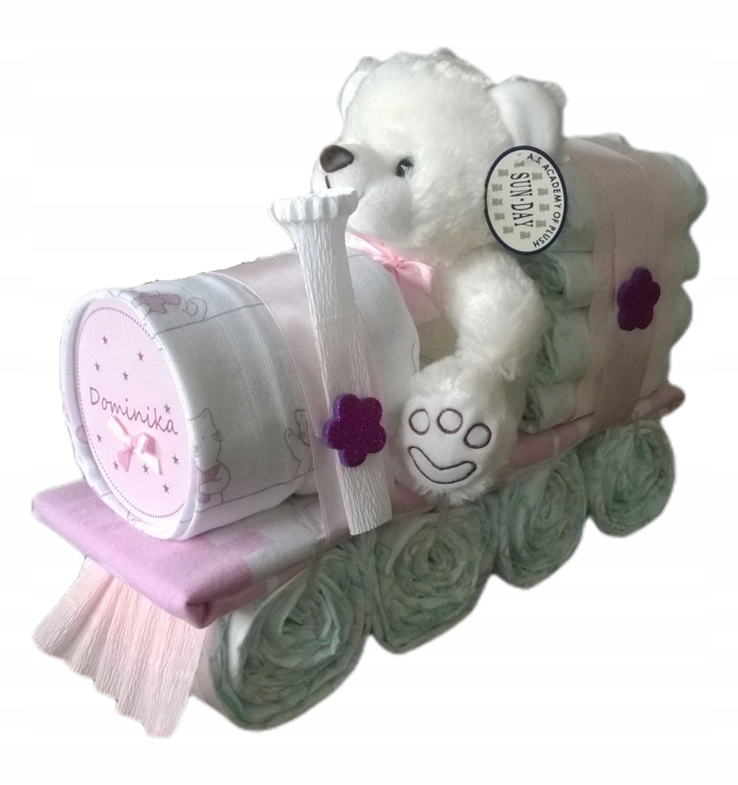 - 34 підгузки PAMPERS - розмір 3 (6-10 кг). Інші розміри доступні в інших наших пропозиціях. Також можемо виготовити паровозик з пелюшок Dada.