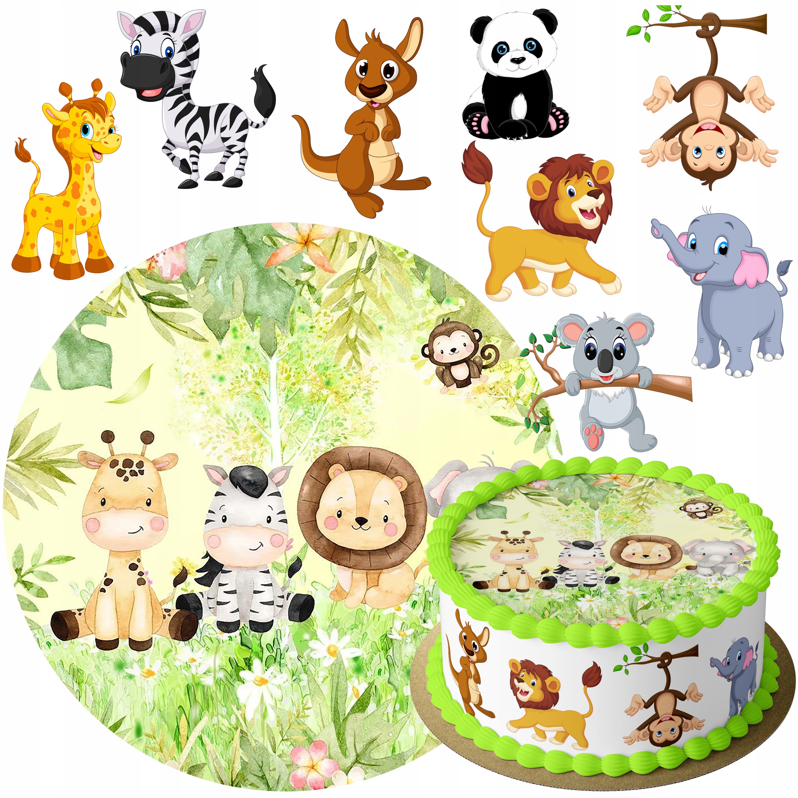 Вафля на торті САФАРИ З ТВАРИНАМИ + 8 СИМВОЛІВ ТЕКСТ