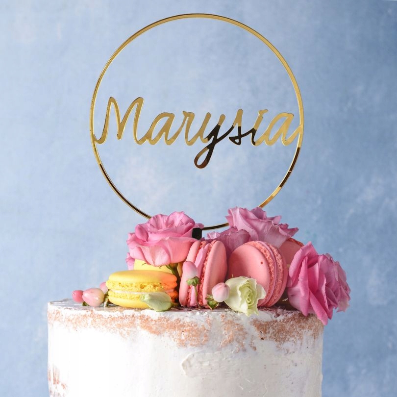 Тортник золотий ІМ'Я в колі для причастя, хрещення, золото, дзеркальне оргскло