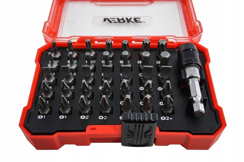 - phillips: 2x ph, 3xph2, 2x ph3, pozi: 2x pz1, 3x pz2 2x, pz3, проріз: 4,0, 4,5, 5,0, 5,5, 2x6,0, 6,5, шістнадцяткована: 2,0, 2,5, 3,0, 2x 4,0, 5,0, 6,0, Torx: T10, T15, T20, T25, T27, T30, T40