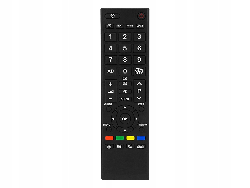 пульт дистанційного керуваннявисокоякісний пульт дистанційного керування, призначений для співпраці з вибраними телевізійними моделями Toshiba. Система стандартних кнопок дозволяє керувати основними функціями пристрою.