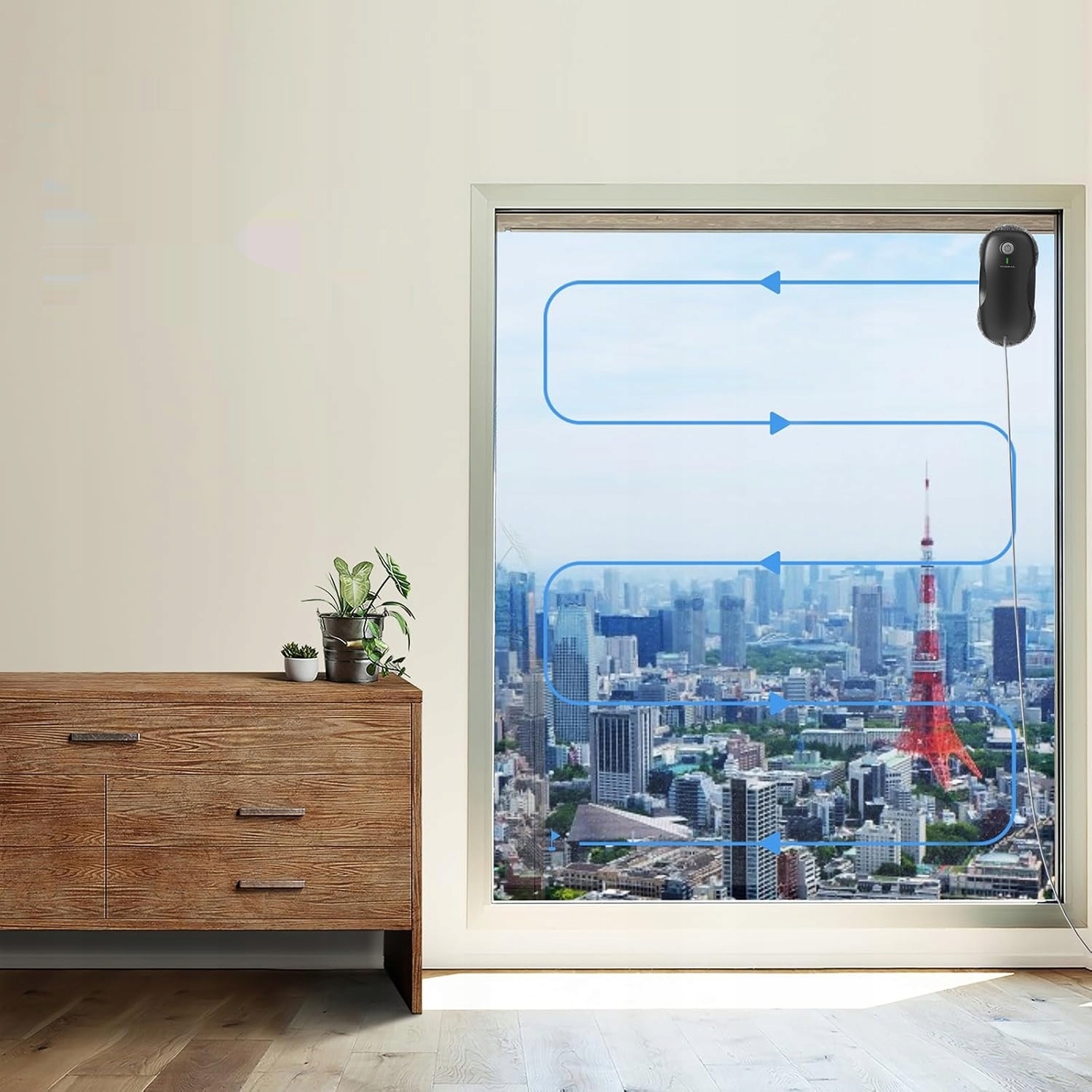 【4 Режими очищення】 Активуйте робот для очищення вікна одним клацанням, інтелектуально та автоматично планувати шлях очищення S-подібної форми, досягнувши максимальної та оптимальної ефективності очищення та зменшуючи втрачене або забруднене очищення. Дистанційне управління може регулювати напрямок очищення вікна вгору, вниз, вліво, праворуч і чистий відповідно до ваших потреб. Після очищення він автоматично повернеться до початкової точки. Підходить для скла, керамічної плитки, дерев’яних дверей та всіх гладких поверхонь.