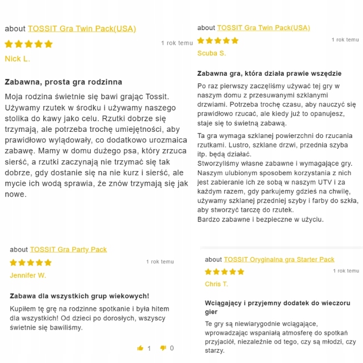 Готові до епічної битви на присосках? Грайте зі своїм найкращим другом, дідусем, дитиною чи навіть начальником (якщо він крутий). TOSSIT — це божевільна аркадна гра для двох, яка поєднує в собі сміх, змагання та багато веселощів. Чудовий подарунок і абсолютний хіт на кожній домашній вечірці!