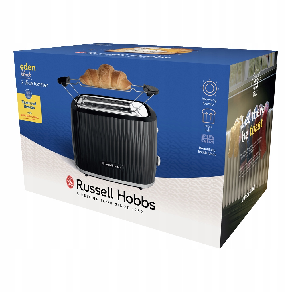 Рассел Хоббс Еден Тостер не тільки ідеально захищений хліб, але й чудово виглядає на кухонному прилавку. Модель має елегантну, текстуровану поверхню з хромованими елементами, що робить її приверненням і красиво прикрашає кухню.