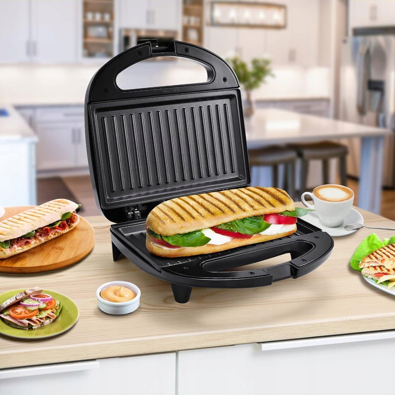 Нагрівальні плити з високоякісних матеріалів швидко нагріваються. і підтримувати постійну температуру протягом усього процесу підсмажування, що є вирішальним для досягнення ідеальної хрусткості та рівномірного нагрівання інгредієнтів сендвіча.