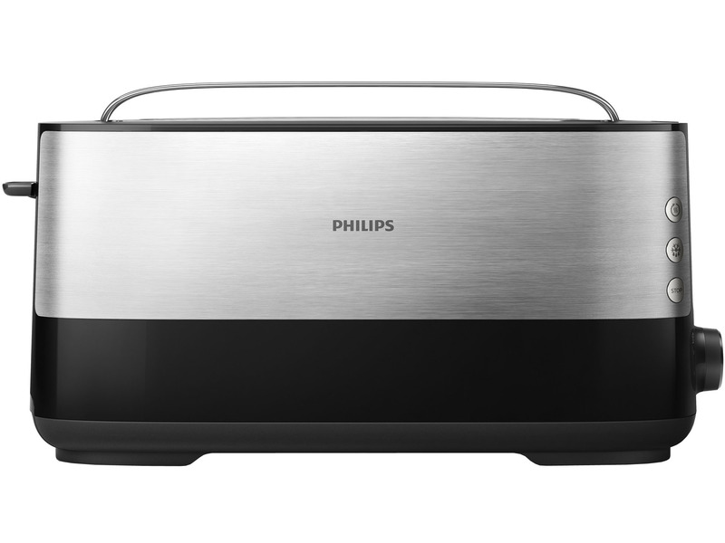 Тостер HD2692/90 від Philips має:8 налаштувань, вбудовану решітку для розігріву булочок , отвор для довгого хліба, корпус, що не нагрівається, кнопка скасування, яка припинить підсмажування в будь-який момент. У виробі є: функція самоцентрування хліба, функція розморожування, пилозахисний чохол, автоматичне відключення . Включає піднос для крихт.