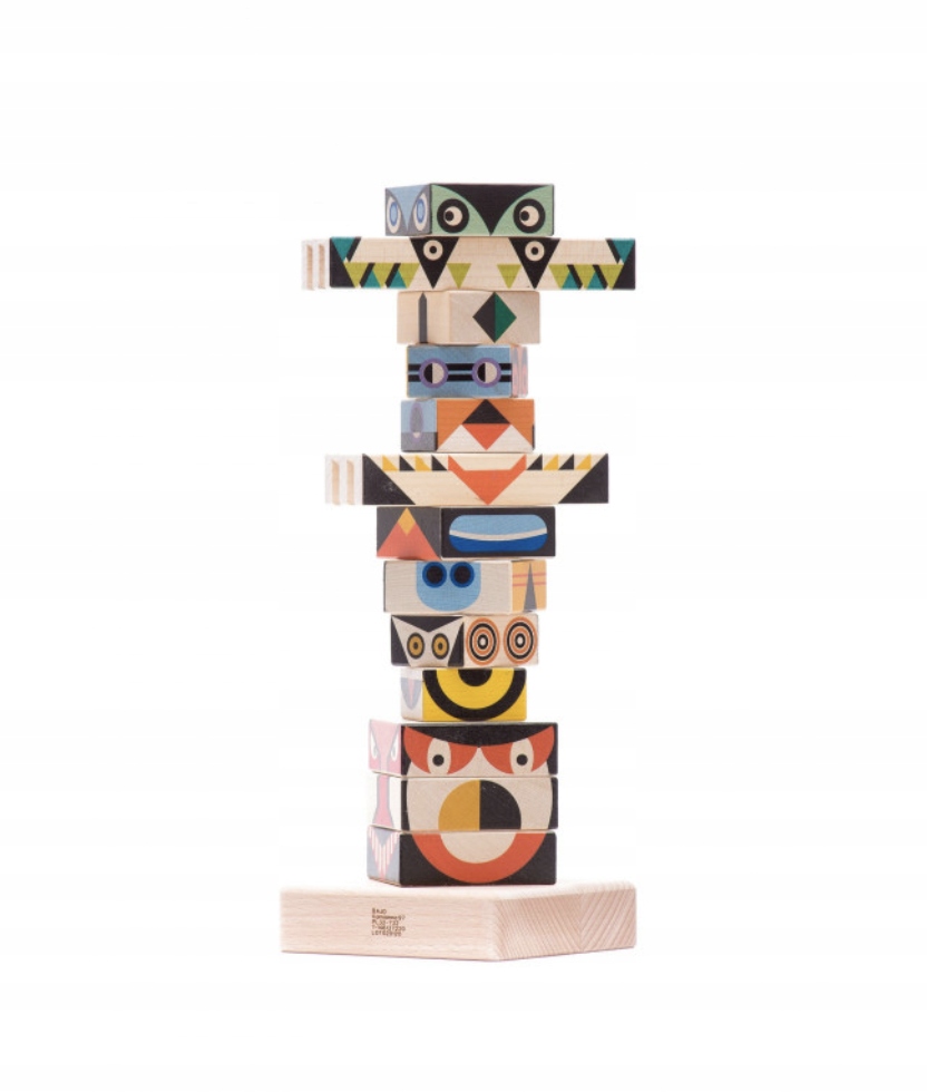Це тотем. Жердина із зображенням тварини. Хто будує такі об'єкти? Тотем у вигляді жердини будують осілі племена. Це емблема роду або роду, що належав до первісних народів. Тварина або певний предмет, істота чи рослина, які були тотемом роду, вважалися його охоронцем і засновником. Граючи з такою іграшкою, дитина отримує знання про культуру різних народів. Цей тотемний тотем також є пірамідою, і прикріплення частин до дерев’яного стовпа є чудовою вправою для координації очей і рук. Пірамідки - це базові іграшки, які сприяють розвитку дрібної моторики у найменших дітей.