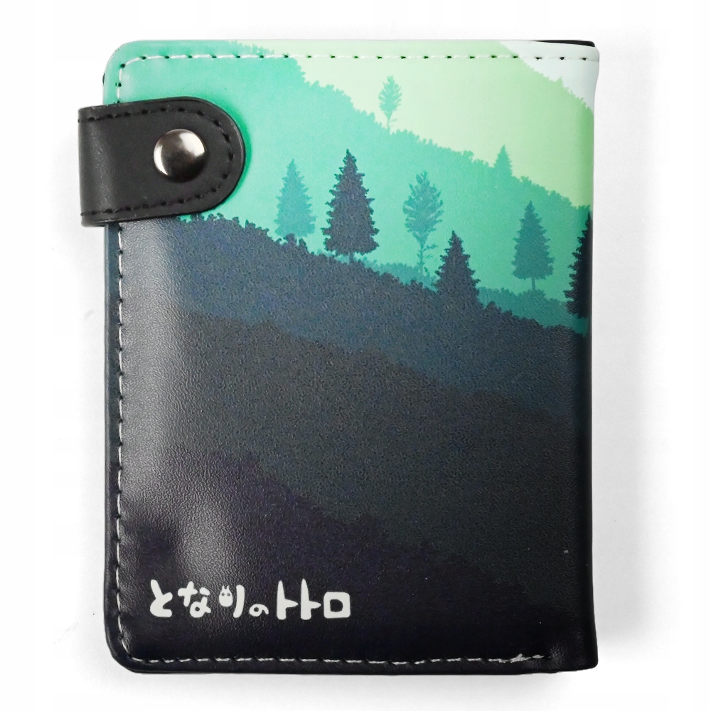 Гаманець довжиною 13 см виготовлений з міцної та естетичної екошкіри, що забезпечує не тільки стиль, але й довговічність. Зелений пейзаж із ледь помітними контурами гір і детальним зображенням дерев оточує все портфоліо. Спереду Тоторо виглядає з-поміж дерев із широко розкритими очима та посмішкою, а ззаду прикрашений японським написом, що додає автентичності. Усередині гаманця є прозора кишеня для документів, відділення для монет на блискавці та слоти для карток, усі вони закріплені міцною застібкою – практичне та красиве рішення в одному.