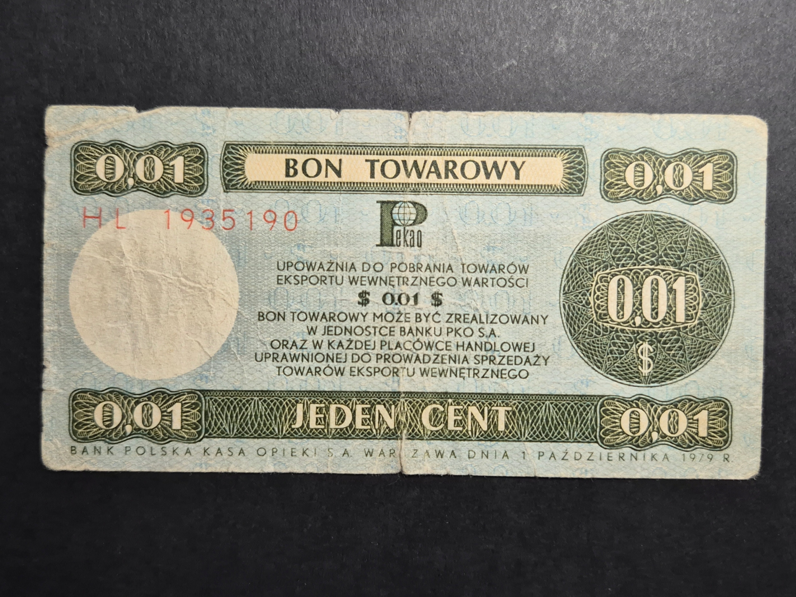 Товарний сертифікат 1 цент Pewex 1979