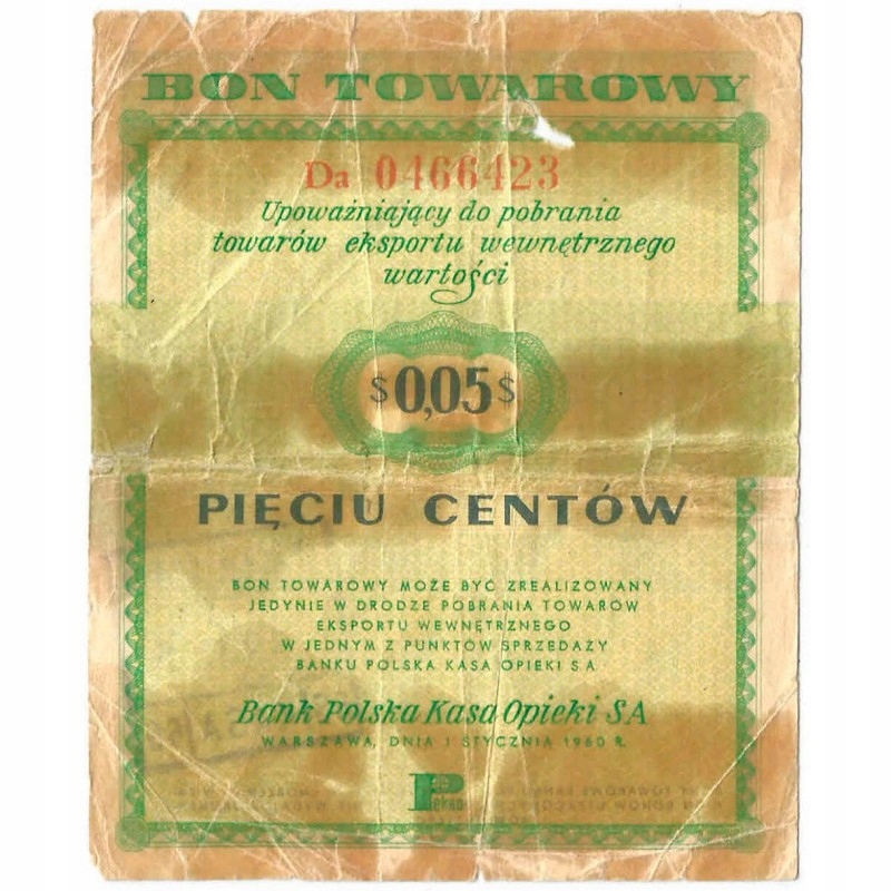 Подарунковий сертифікат на 5 центів 1960 року, серія Da, стан 5