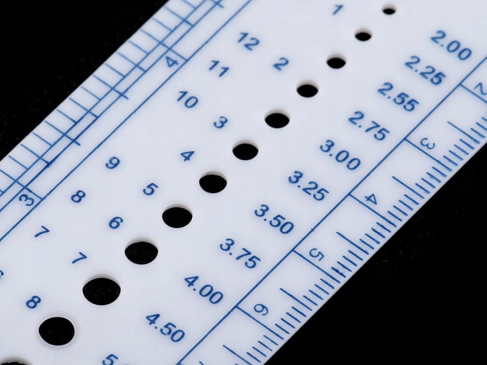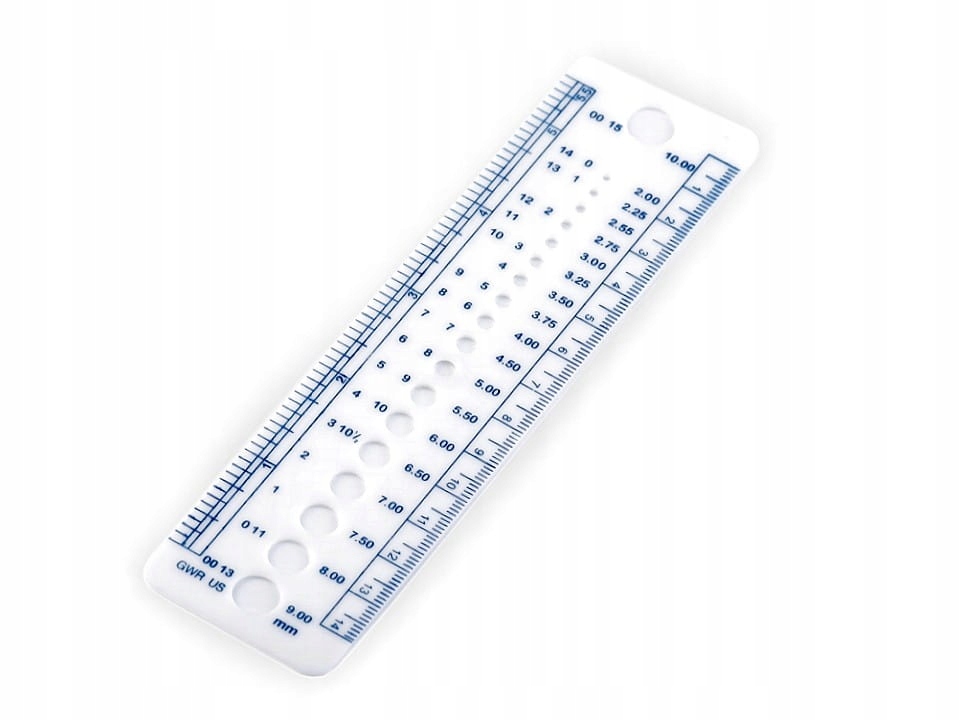 Цей прилад для в’язання — зручний інструмент для в’язальниць. Датчик виготовлений із твердого пластику та має 18 отворів для вимірювання розміру проводів. Крім того, цей вимірювальний прилад має лінійку, яка вимірює вашу роботу в сантиметрах і дюймах. Призначений для вимірювання проводів товщиною від 2 до 9 мм.