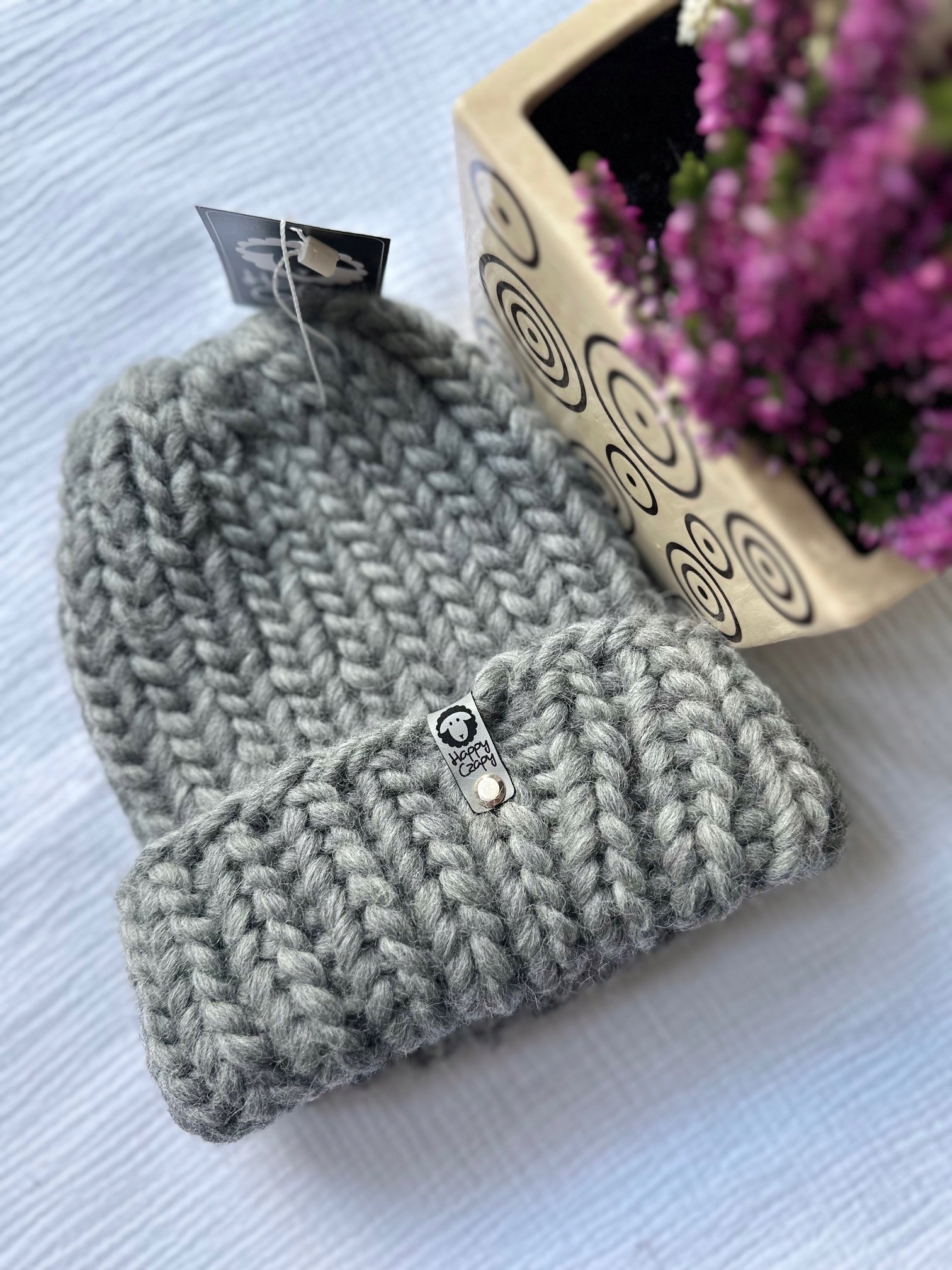 Товста ручна вовняна шапка ковт -сіра ручна ручна робота