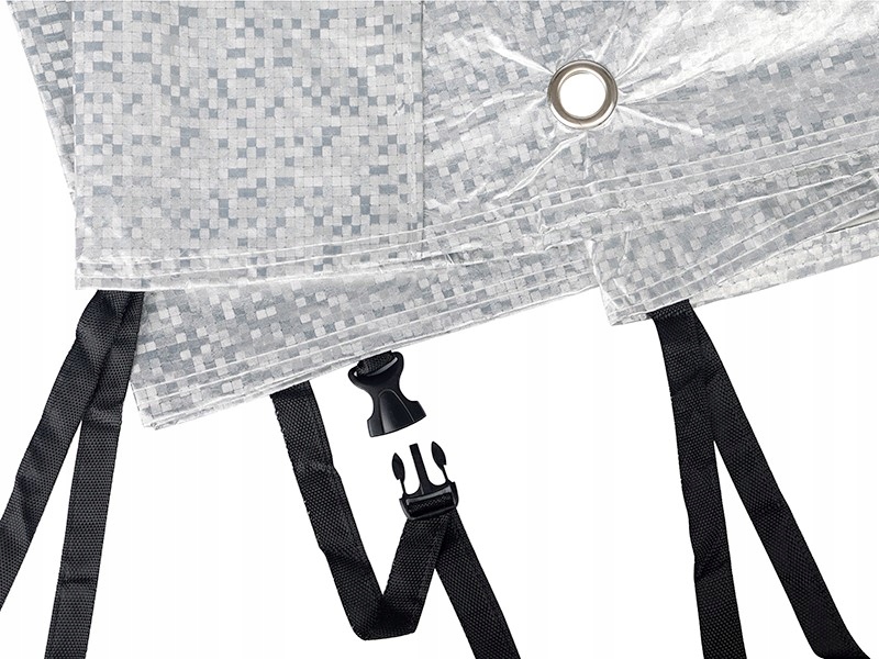 6 світловідбиваючих аквамаринових смуг, пришитих до брезенту, покращують видимість вночі, а гумові манжети, що входять до комплекту, захищають брезент від вітру.