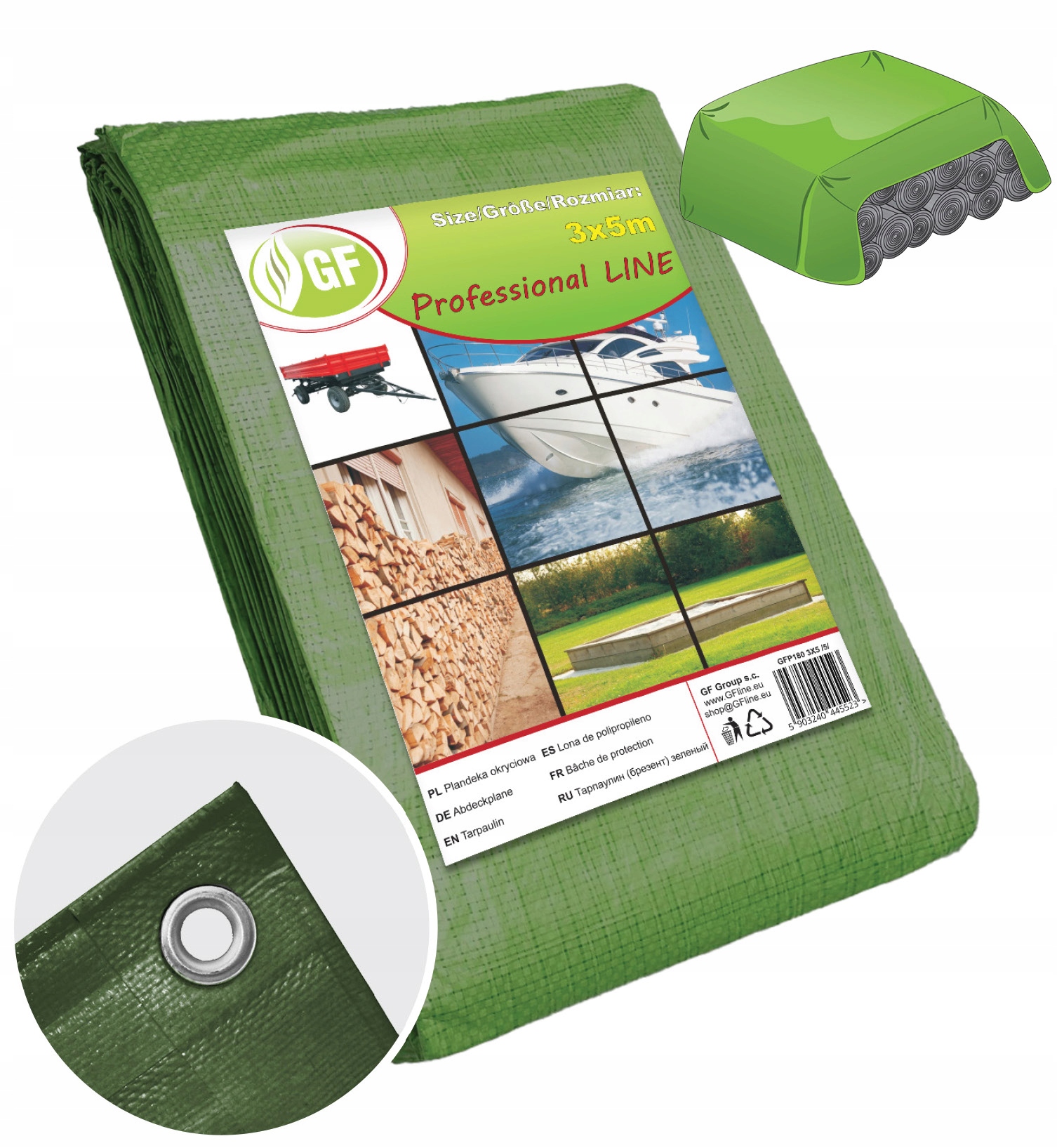 Цей брезент виготовлено з поліетиленової тканини PE, що означає, що він стійкий до різних факторів, таких як вітер, дощ, сніг і низькі температури. Крім того, він був додатково зміцнений УФ-стабілізацією.