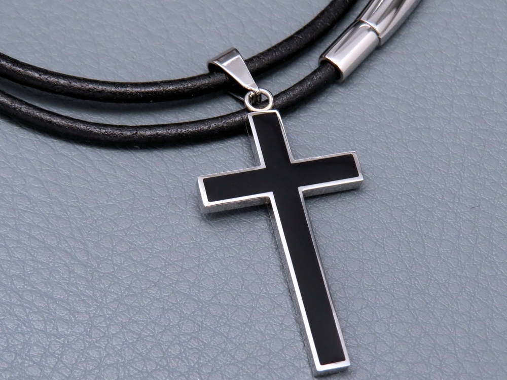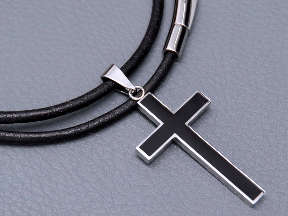 ТОВСТИЙ РЕМІН НА ШИЮ + ХРЕСТ 55 см
