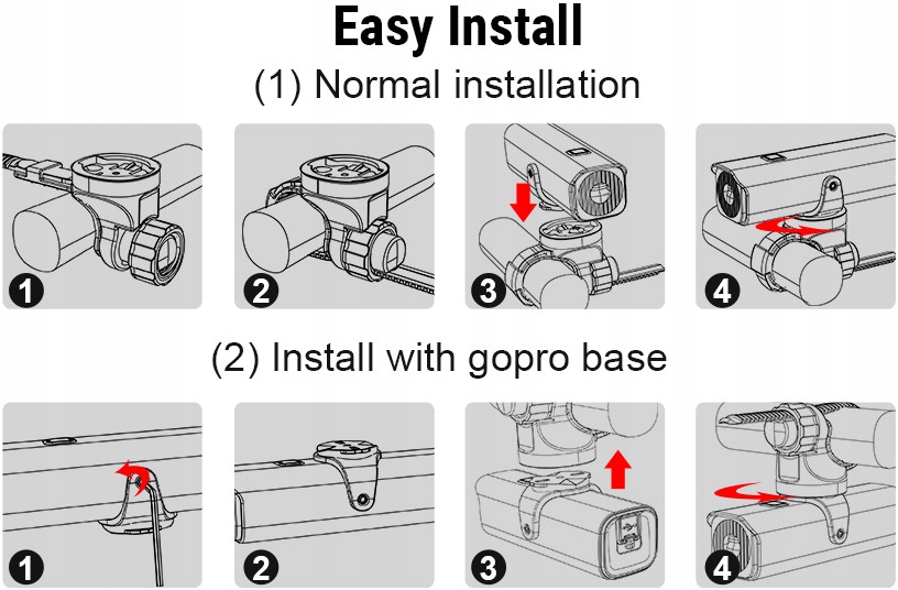 Дозволяє два способи кріплення - набір включає традиційний тримач, який видно на першому фото, і адаптер для кріплення в Тримач GoPro.