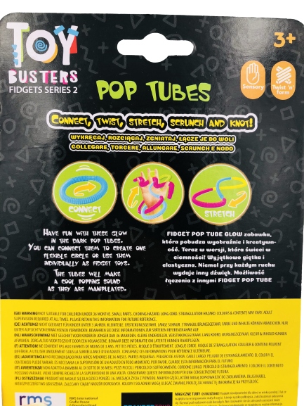 TOY BUSTERS FIDGET POP TUBES СЕНСОРНІ ТРУБКИ 3 шт. GLOW