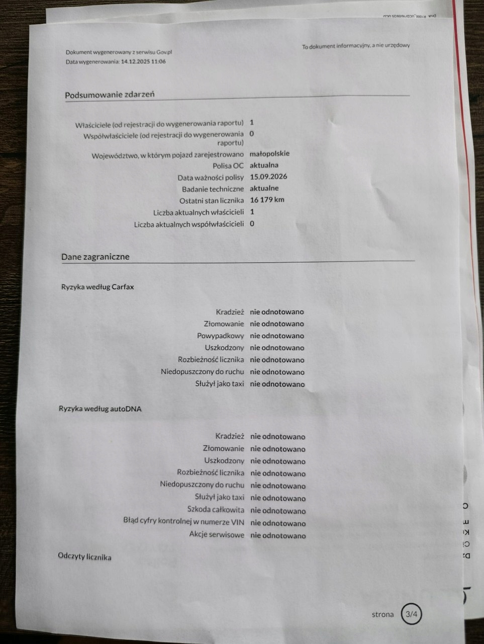 Надаю датчик фарби. Авто безаварійне, всі кузовні та оригінальні вікна. Наразі на ньому встановлені нові всесезонні шини [замінено через вік], а масло замінено минулого року за 15 450 злотих.