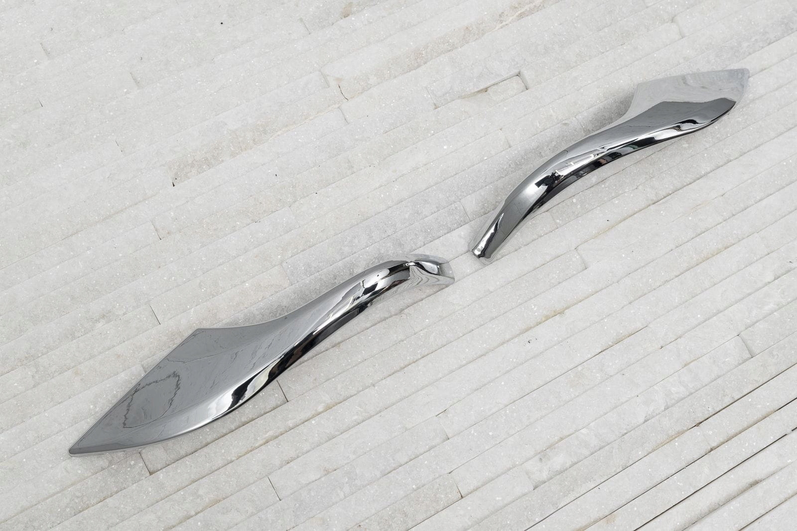 Декоративні, хромовані накладки на дзеркала відрізняються оригінальною формою, ідеально підходять до стилю Toyota C-HR. Завдяки інтригуючій формі та дзеркальному блиску смужки доповнюють стиль автомобіля сучасним акцентом, що привертає увагу. Виріб виготовлено з високоякісного ABS пластику.