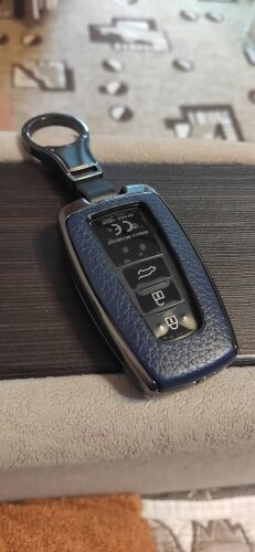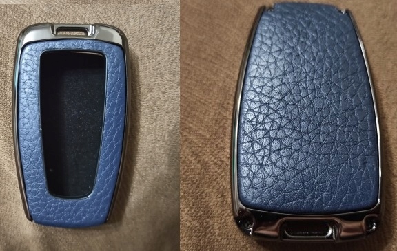 In the offer new exclusive case, "armored" metal, dark chrome cover with leather elements in the navy blue version for keys to the keys models for Smart Keyless 2/3/4 Buttons: