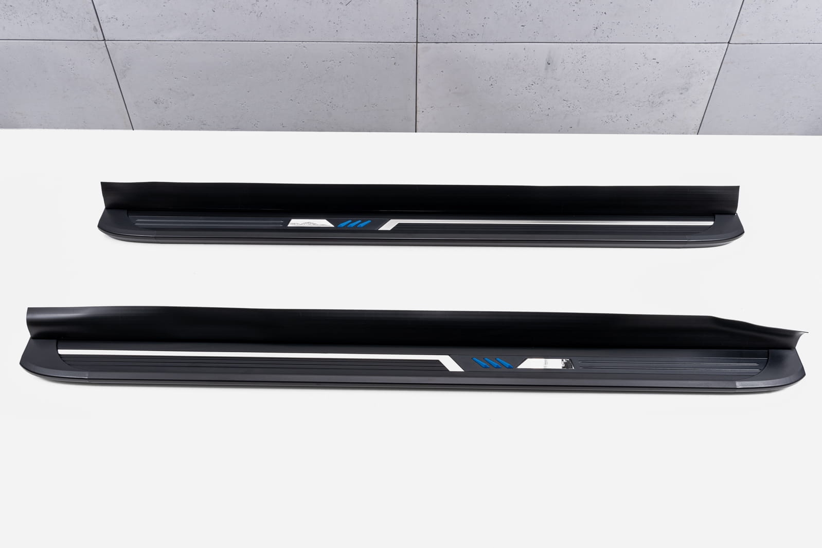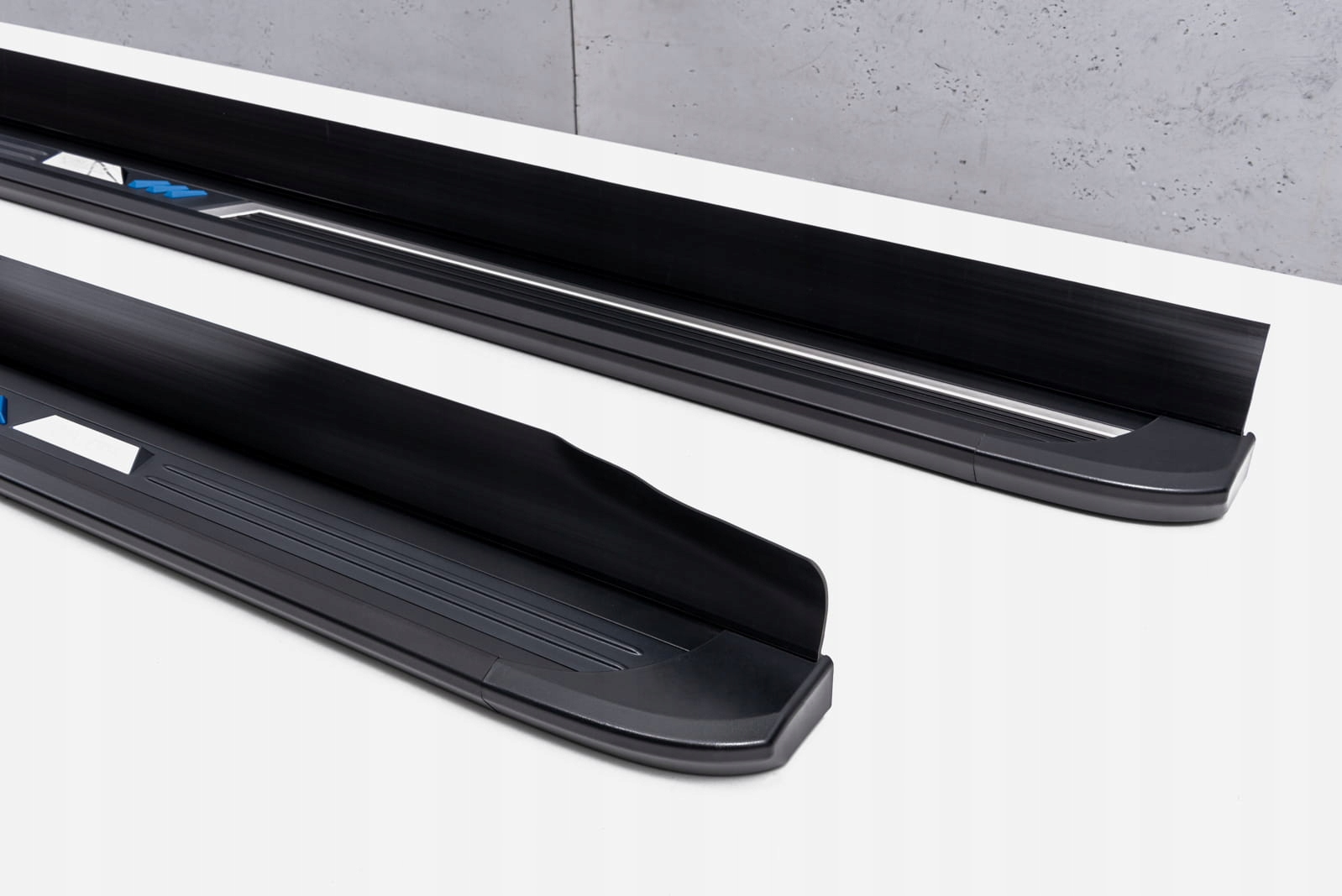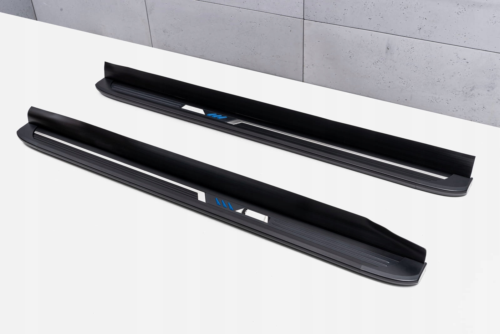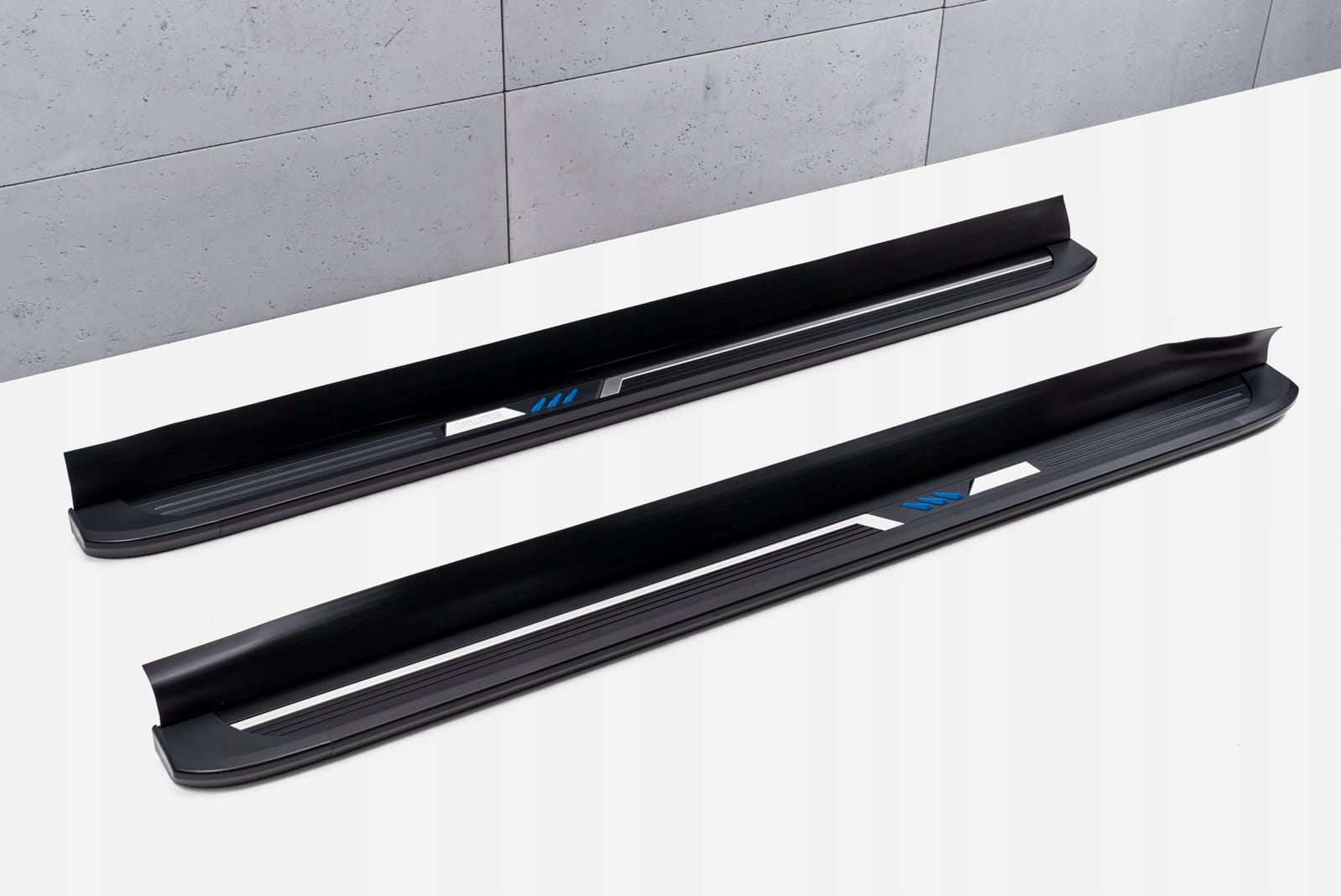 Представляємо набір порогів, які відрізняються оригінальним сучасним дизайном. Пороги розроблені відповідно до сучасних тенденцій, тому вони не тільки підвищують комфорт подорожуючих, але й є справжньою окрасою автомобіля. Декоративні сталеві елементи додають престижний акцент на порогах, відсилаючи при цьому до інших елементів кузова вашого автомобіля - все це означає, що пороги ідеально доповнюють стиль автомобіля, підкреслюючи його спортивну душу та індивідуальний характер.