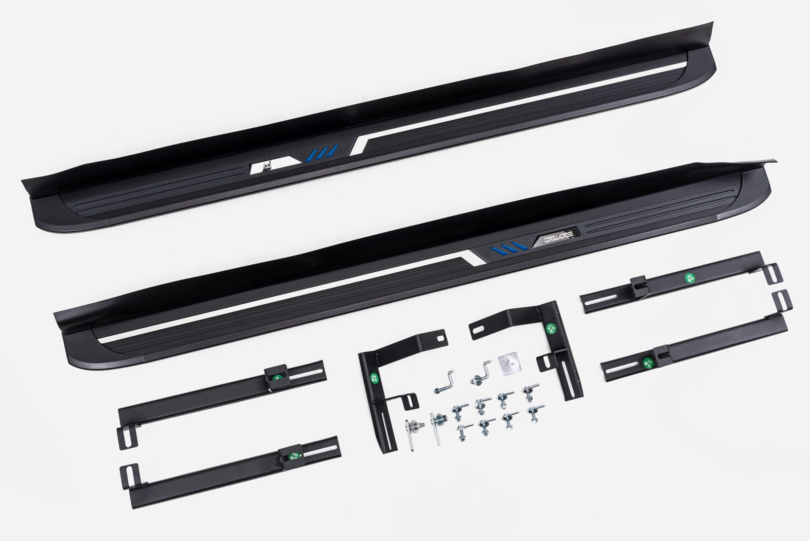 Бічні підніжки розроблено для підвищення комфорту під час входу та виходу з автомобіля, а також для забезпечення більш зручного робочого положення під час розміщення вантажів на даху автомобіля. Пороги не тільки забезпечують комфорт, але і підвищують безпеку, що особливо важливо для дітей і людей похилого віку.