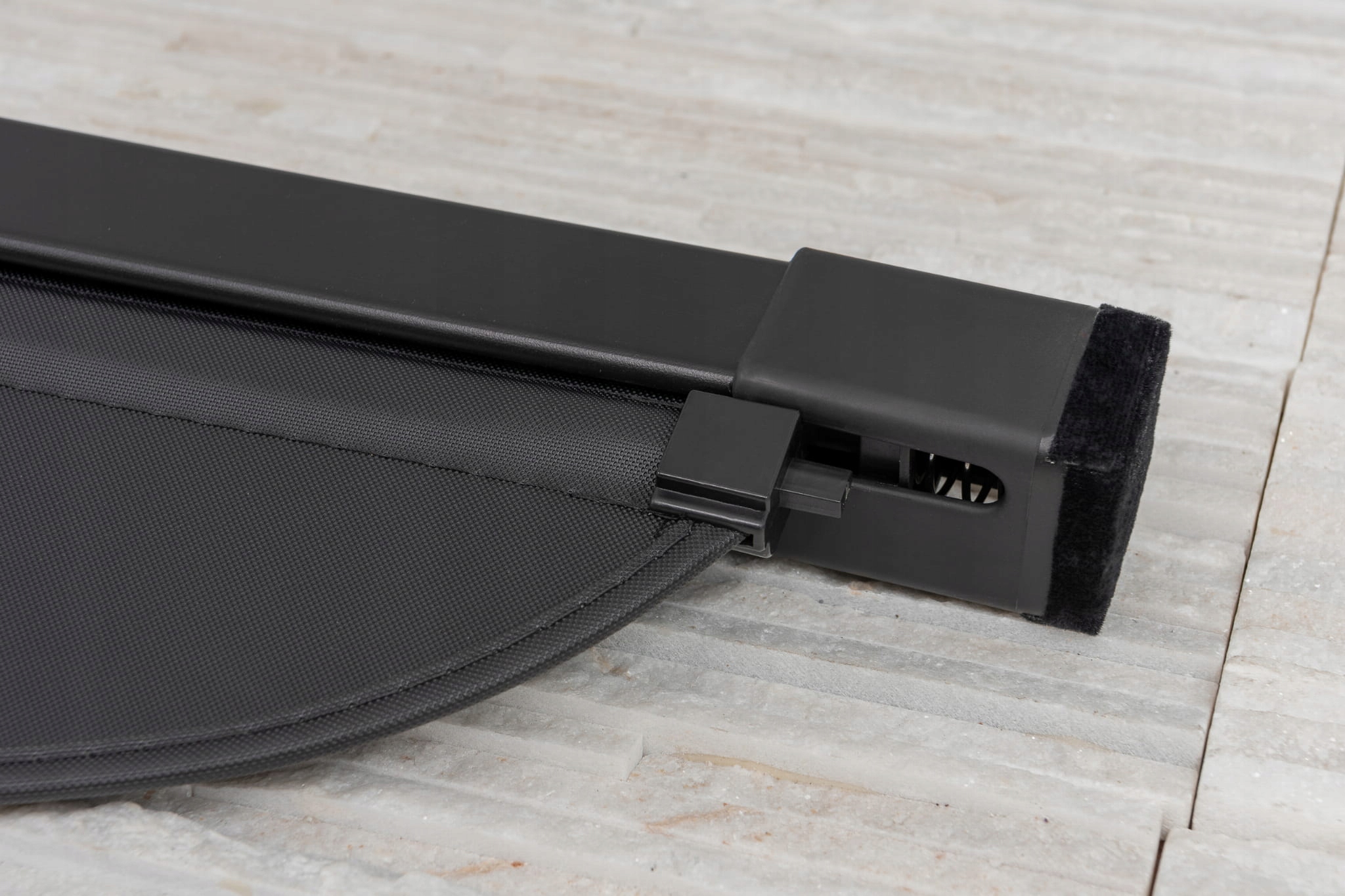 Використання складеної сліпої дозволяє захистити простір багажу від надмірного сонячного світла. Він також захищає вміст тулуба, тим самим зменшуючи ризик крадіжок всередині предметів. Елегантний чорний колір та естетика роблять сліпий ідеально гармонізуються зі стилем автомобіля. Обрізання завіси виготовляється з матеріалу, стійкого до пошкодження та знебарвлення, спричиненого сонячним світлом та змінами температури, завдяки якому продукт виглядає чудово тривалий час.