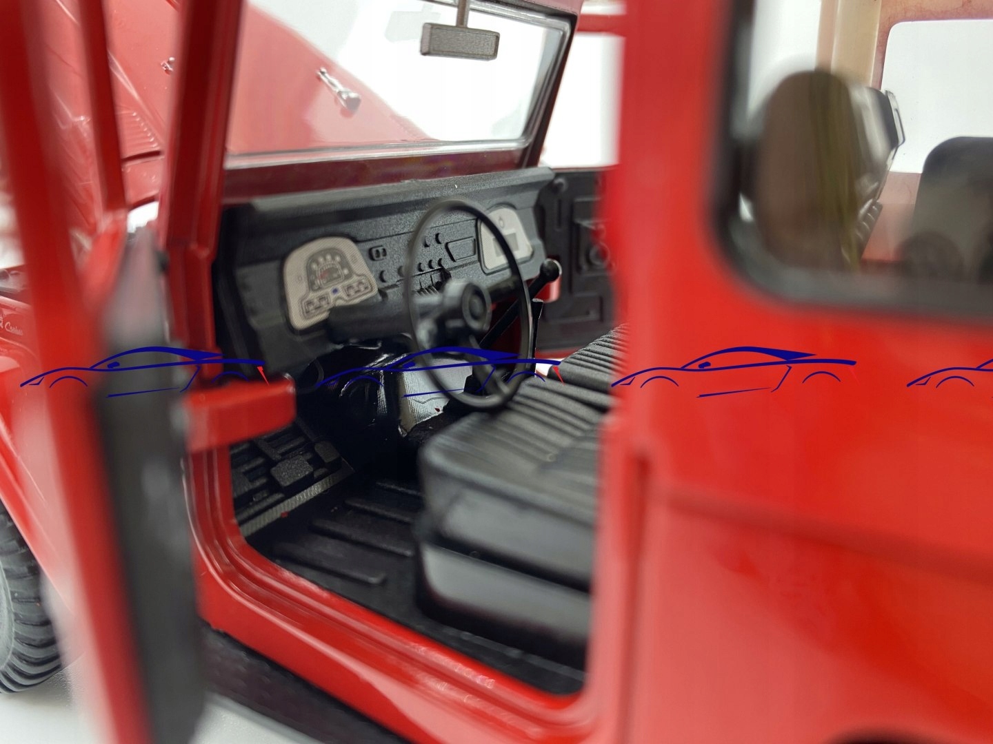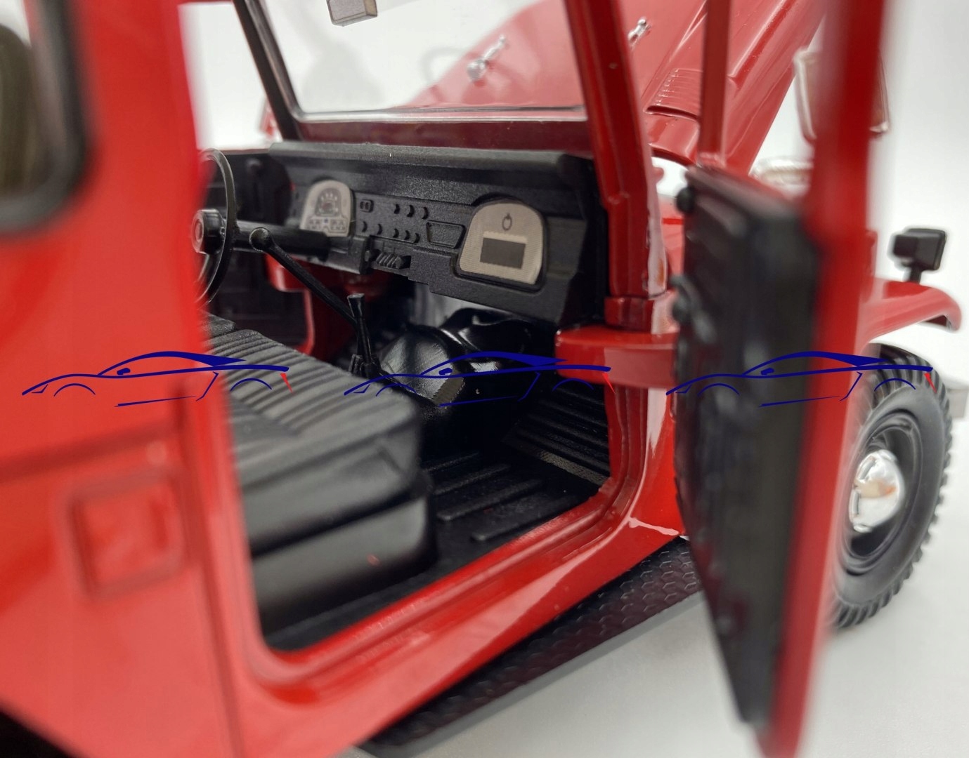 Модель автомобіля характеризується увагою до деталей. Має рухомі елементи - колеса, двері ззаду.