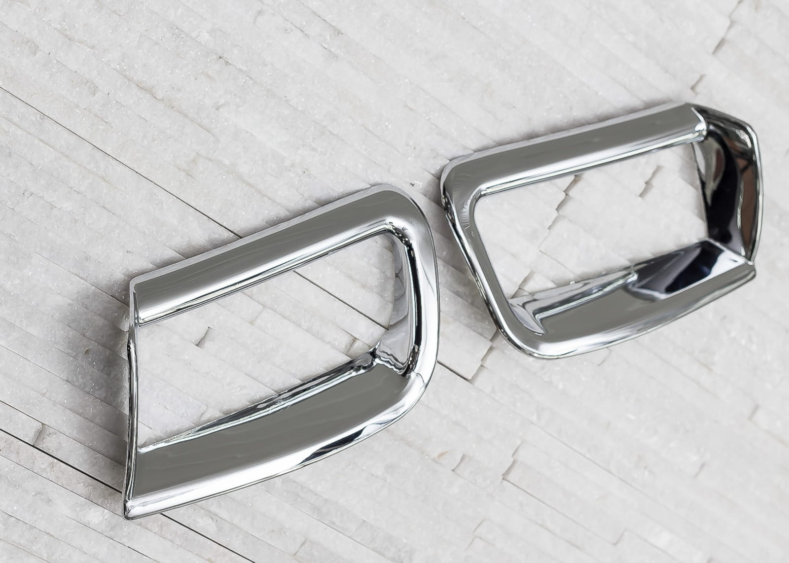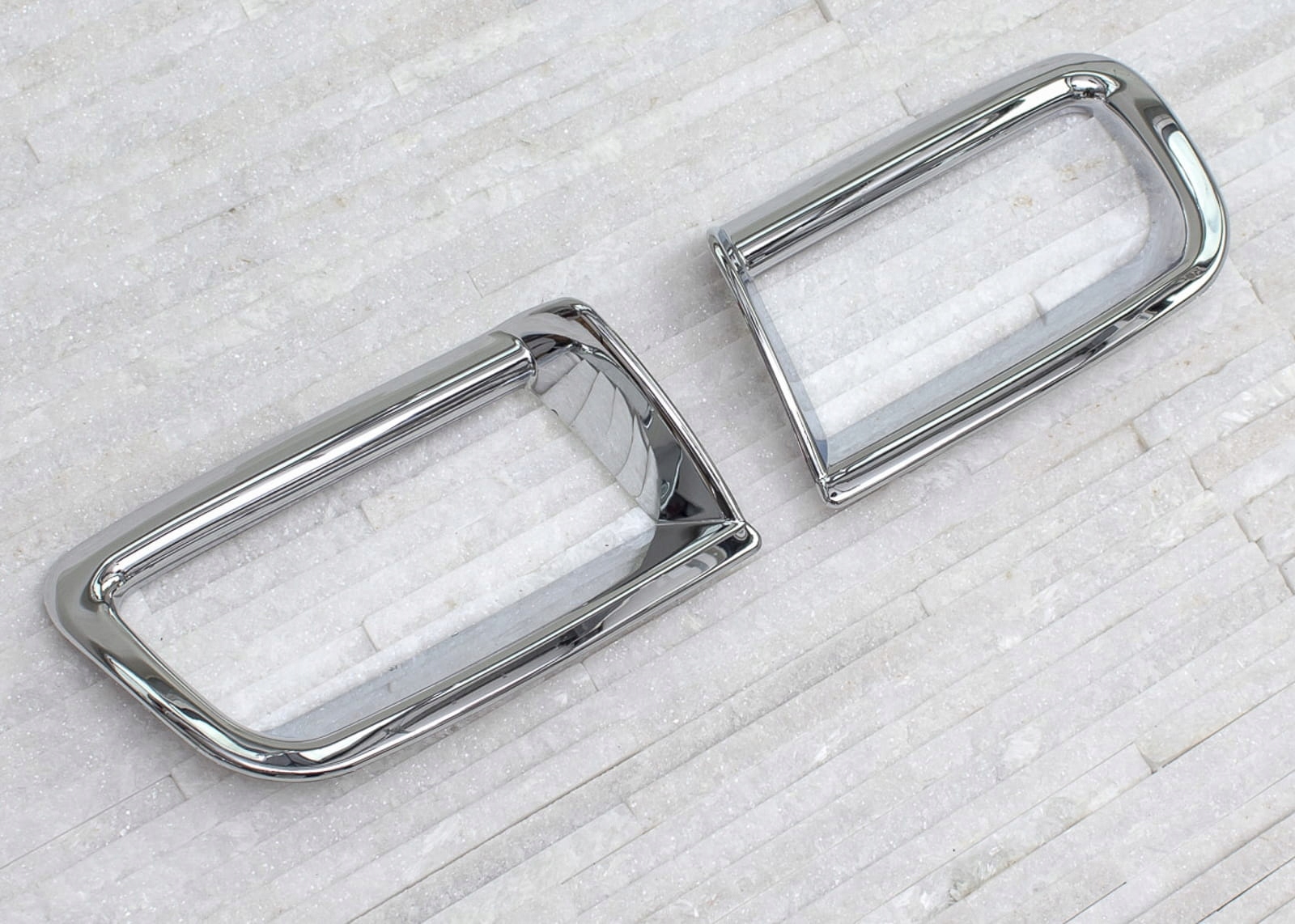 Виріб виготовлено з високоякісного хромованого ABS-пластику. У комплект входить набір з двох галогенних чохлів.