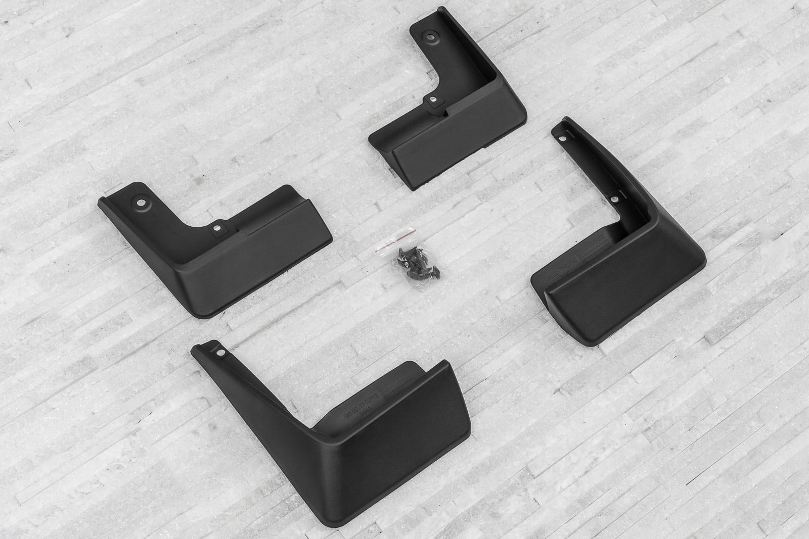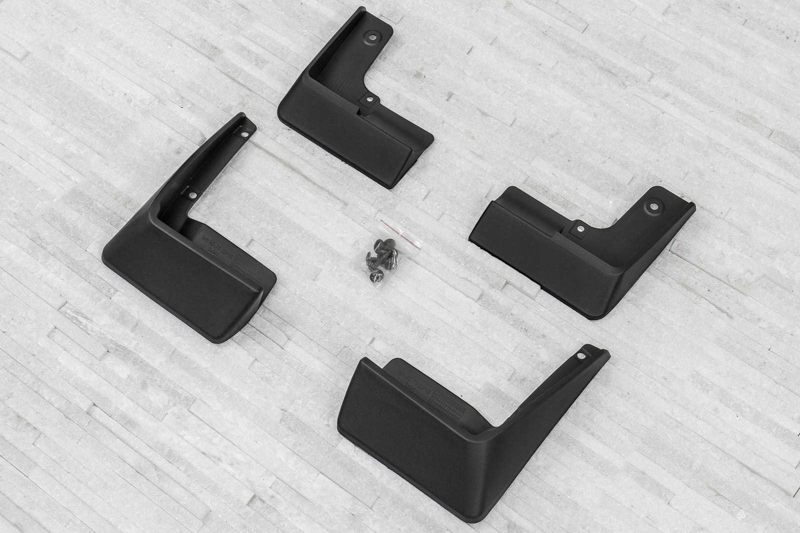 У набір входить набір із чотирьох бризговиків та елементів кріплення. Виріб встановлено на заводські місця, без додаткових доробок. Ми рекомендуємо установку в професійній майстерні.
