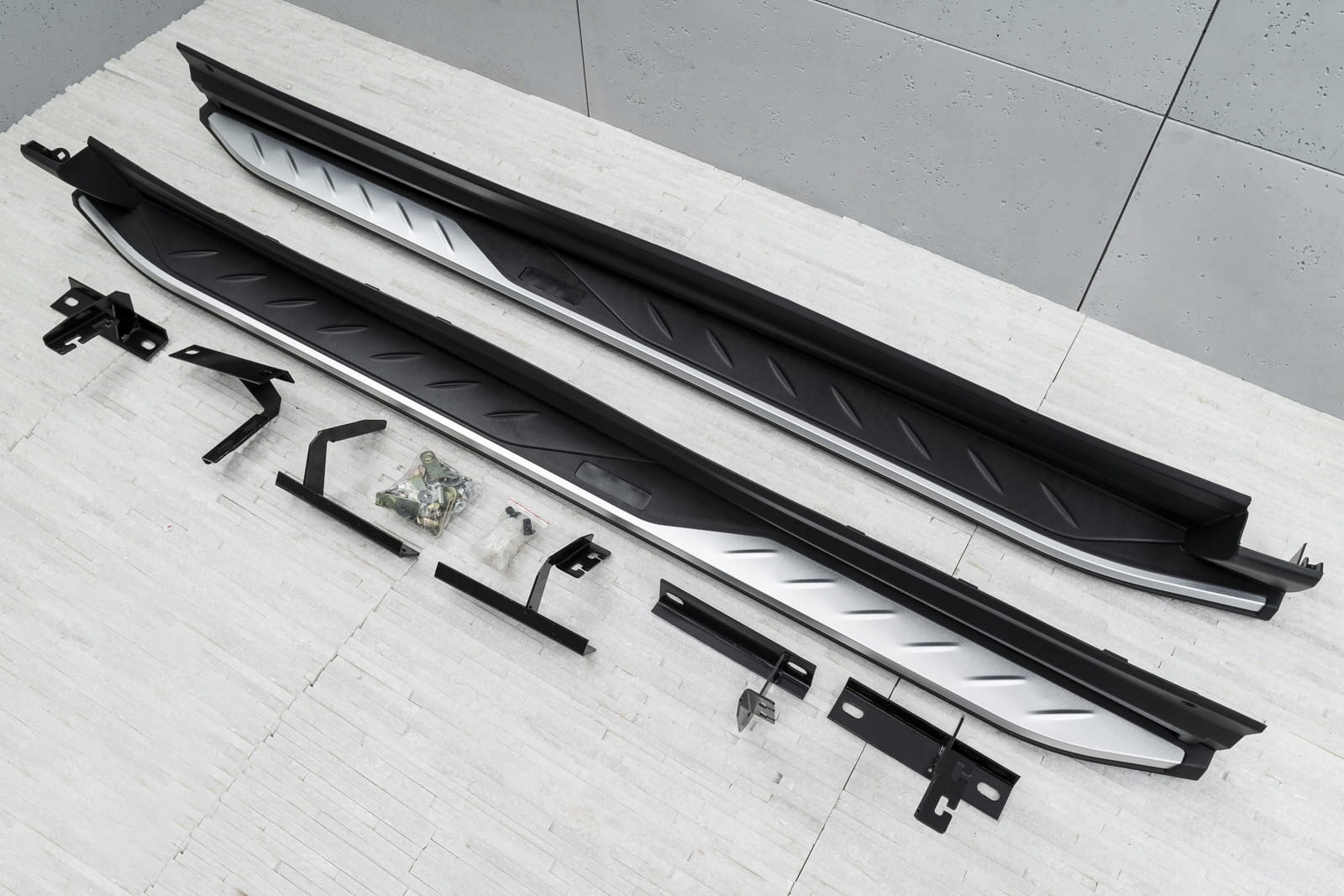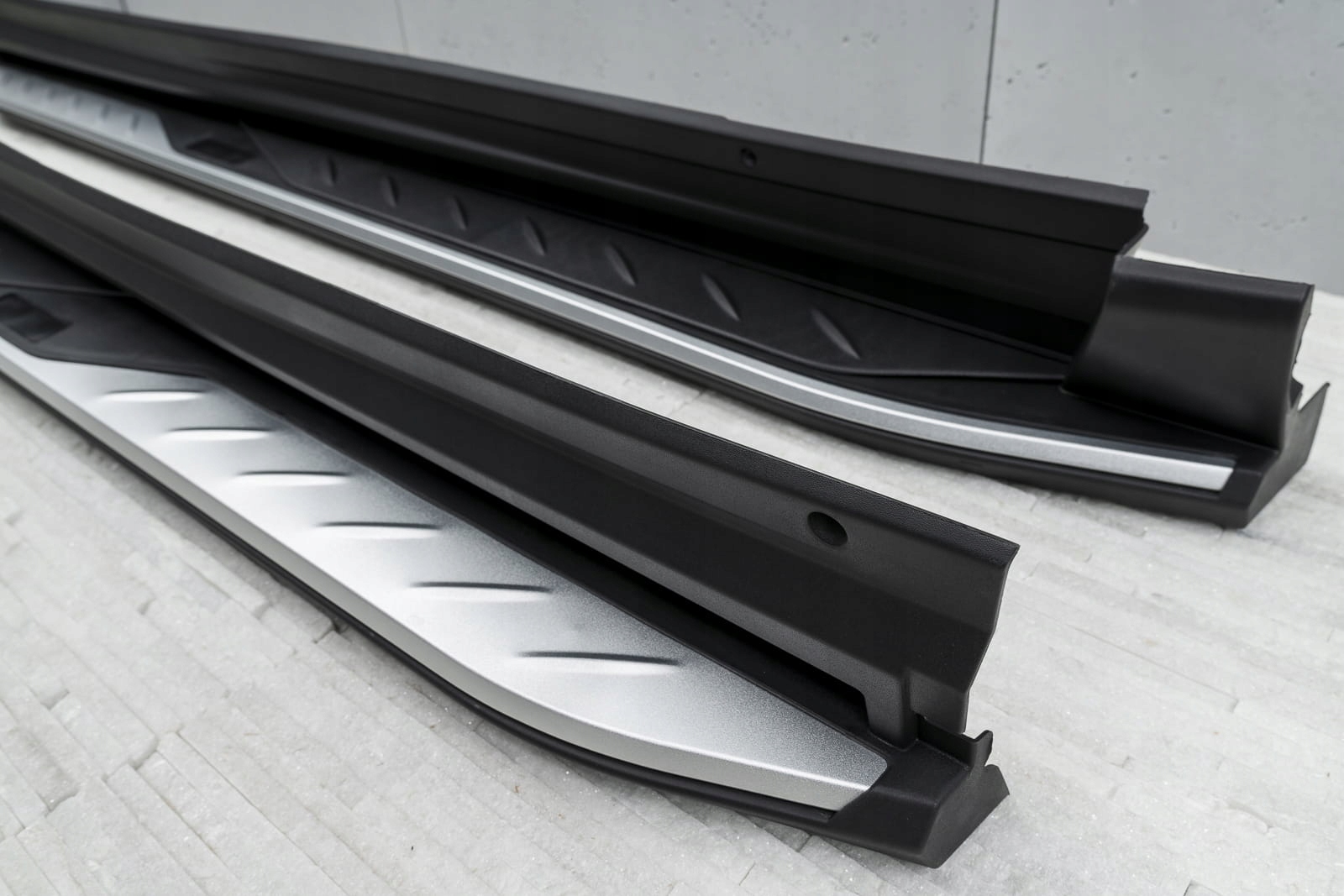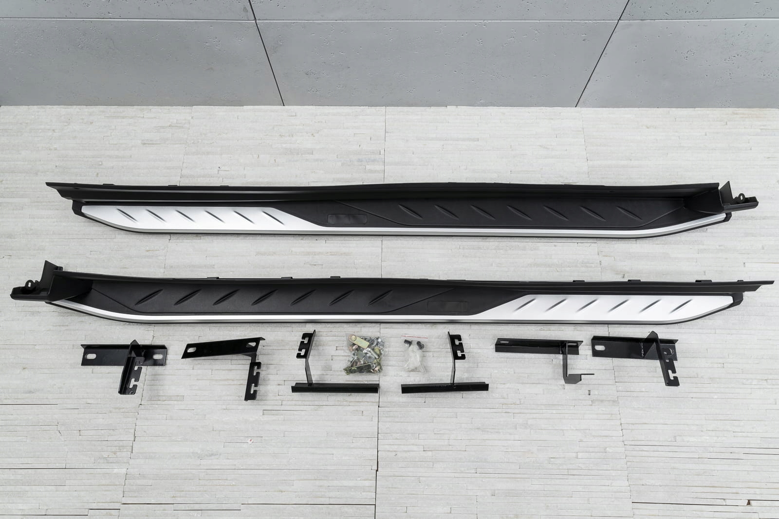 Встановлення ступенів не потребує свердління додаткових отворів, що дозволяє зберегти оригінальні точки кріплення та гарантує неінвазивний монтаж. У набір входить набір підніжок (права і ліва), елементи збірки та інструкція. Проте ми рекомендуємо професійну збірку в майстерні (з досвіду ми знаємо, що найкраще скористатися послугами малярних або кузовних майстерень, тому що на цих підприємствах найчастіше встановлюють планки, плінтуса та сходинки , тому складання для цих заводів є /b> інтуїтивно зрозумілою дією).