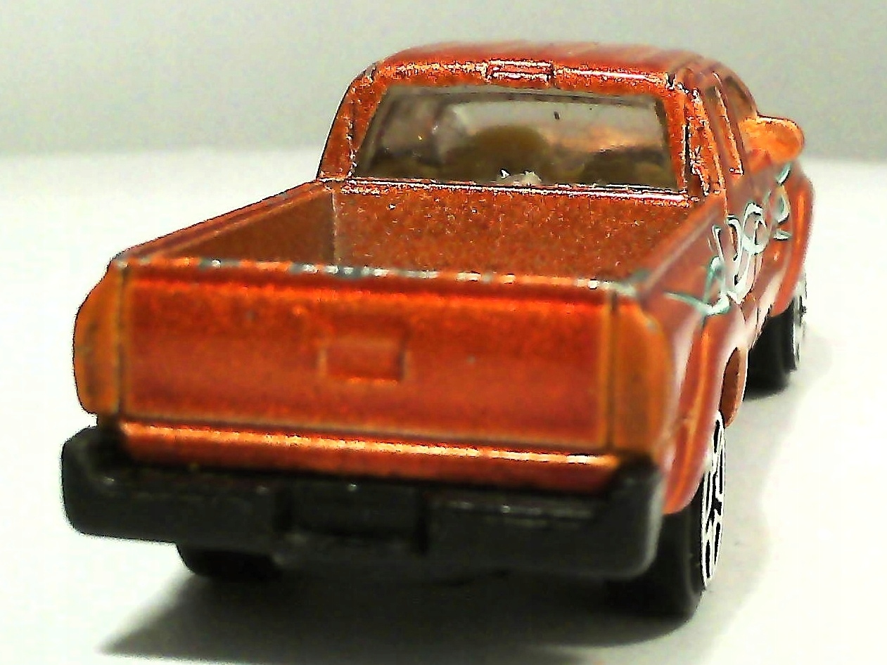 Пневморессора Toyota Tacoma - це модель, яка привертає увагу завдяки помаранчевому корпусу з синіми візерунками. Це мініатюрна версія популярного пікапа, що характеризується відкритим вантажним простором і міцною конструкцією з металу і пластику. Стан моделі дуже хороший, що робить її привабливою для колекціонерів.