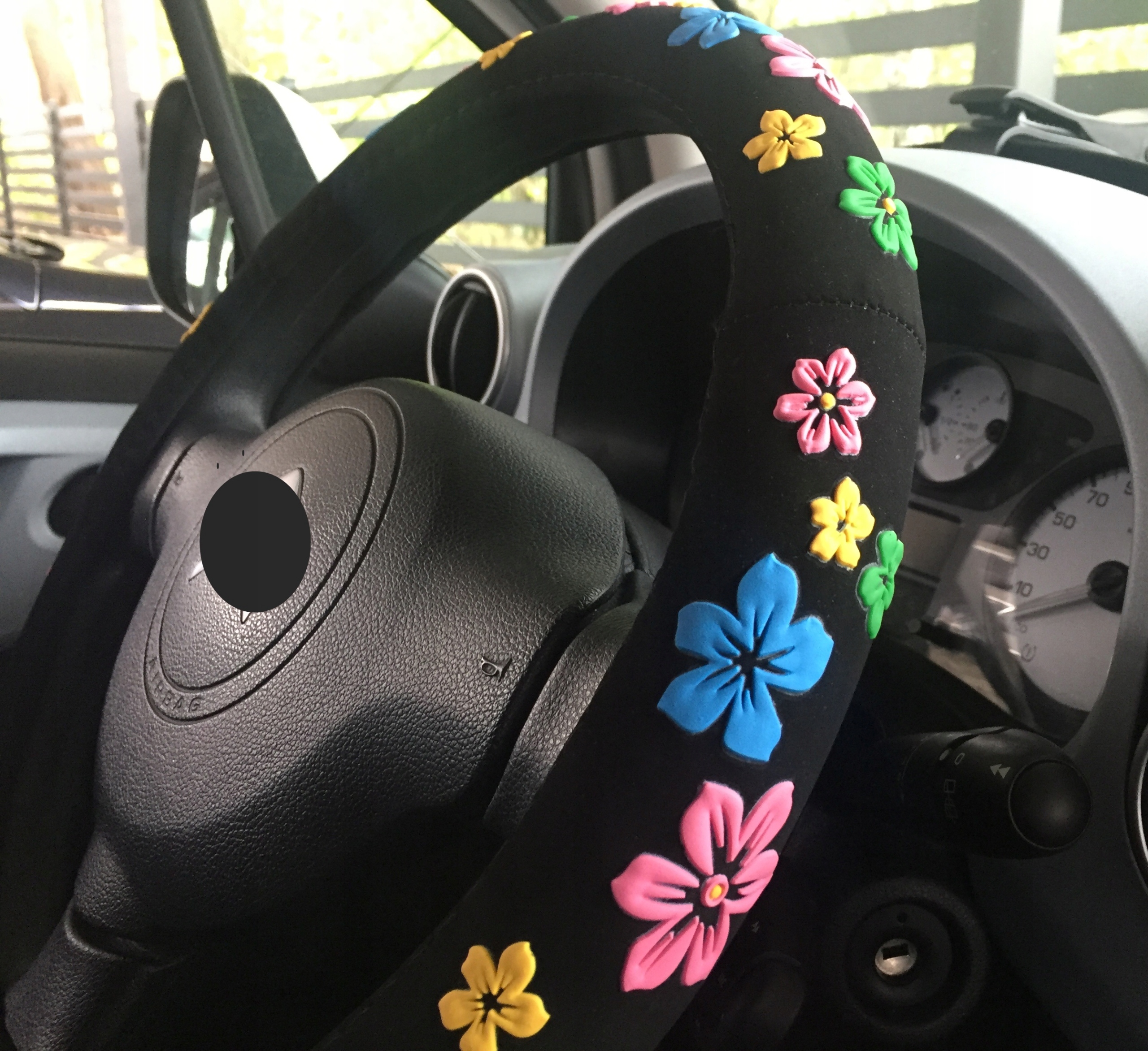Чохол на кермо з високоякісного матеріалу (замша) з квітковим мотивом.