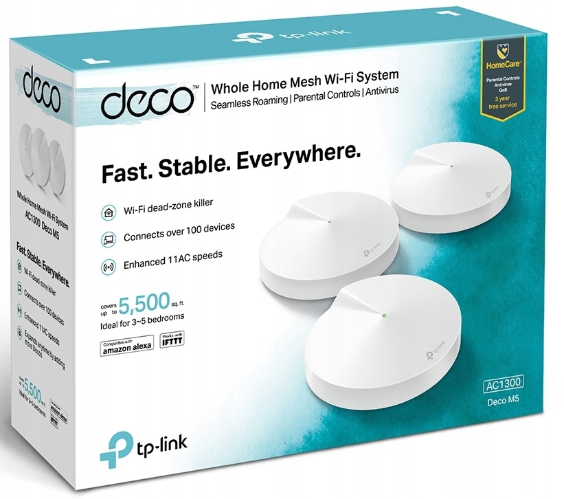 Оплачивая «TP-LINK Deco M5 Wi-Fi Mesh AP AC1300 3 шт», вы можете быть уверены, что данный товар из каталога «Маршрутизаторы WiFi и Access Pointy» будет доставлен из Польши и проверен на целостность. В цене товара, указанной на сайте, учтена доставка из Польши. Внимание!!! Товары для Евросоюза, согласно законодательству стран Евросоюза, могут отличаться упаковкой или наполнением.