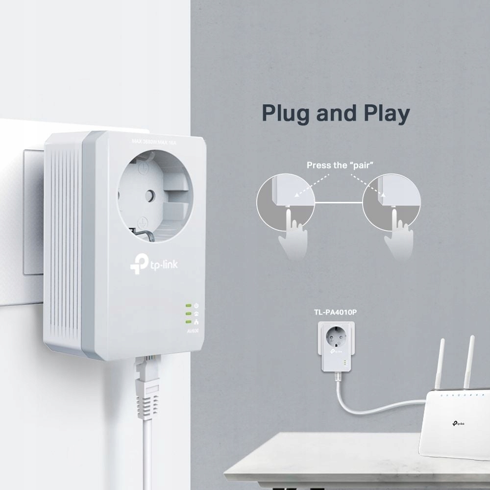 за підтримки розширеного стандарту HomePlug AV600 TL -PA4010P. Нульове свердління та без кабелів! Крім того, передавачі побудували -в енергетичних розетках, завдяки якому вони не займають цінного доступу до електроенергії.