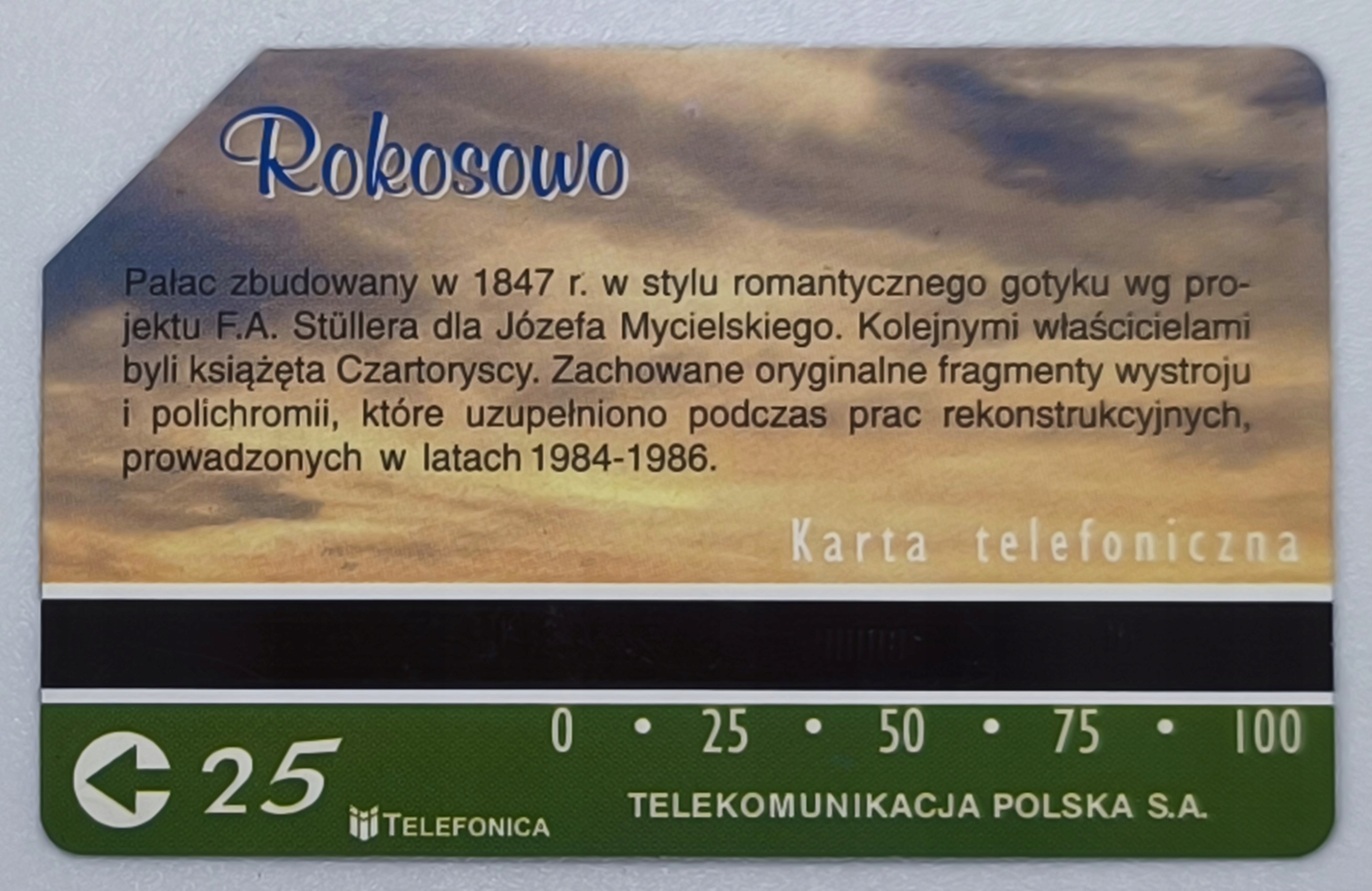 TP S.A. ТЕЛЕФОННА КАРТКА НОМЕР 1150- ЗАМКИ ТА ПАЛАЦИ ЛЕЩИНСЬКОЇ ЗЕМЛІ 5