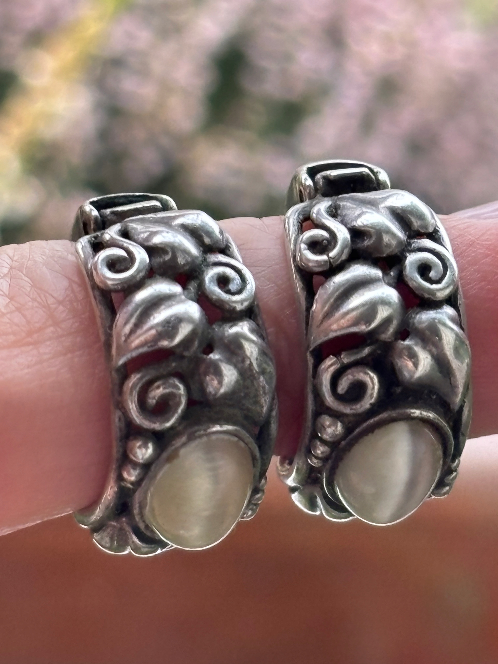 TP сережки старі срібні висячі листя камінь котяче око PRL