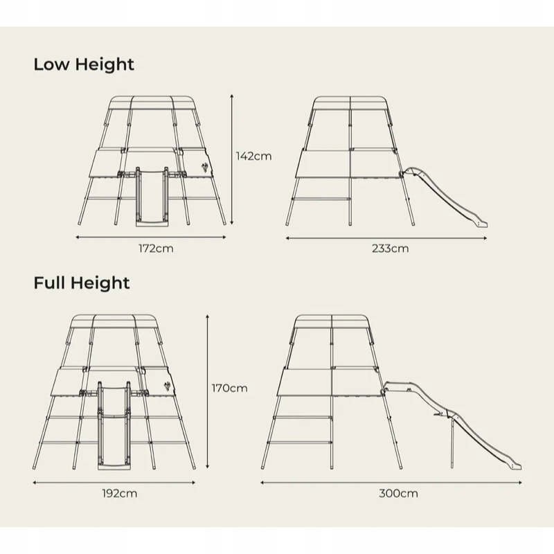 Це означає, що вам не потрібно щороку замінювати обладнання - рамка альпінізму росте разом з вашим малюком. Будівництво , весь набір є твердим, стійким до погодних умов і розраховано на багаторічні розваги.