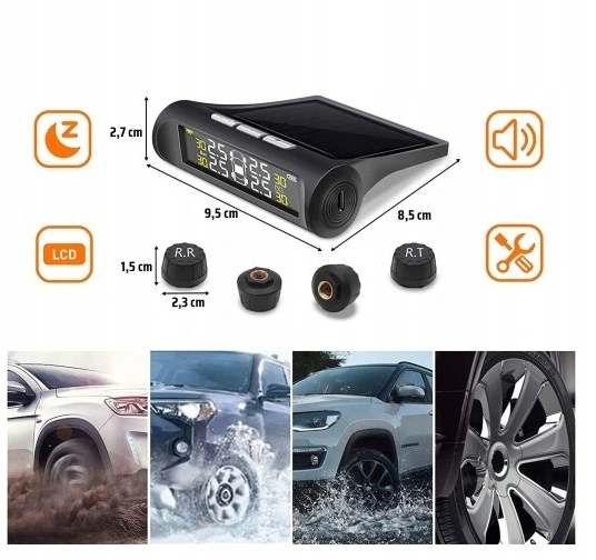 Подбайте про безпеку ваших та пасажирів! Інноваційна система TPMS (система моніторингу тиску шин) контролює тиск у реальному часі та температуру в кожній шині вашого автомобіля. Завдяки читабельному РК -екрану та сонячному джерелі живлення, ви маєте повний контроль без необхідності складного складання або проводки.