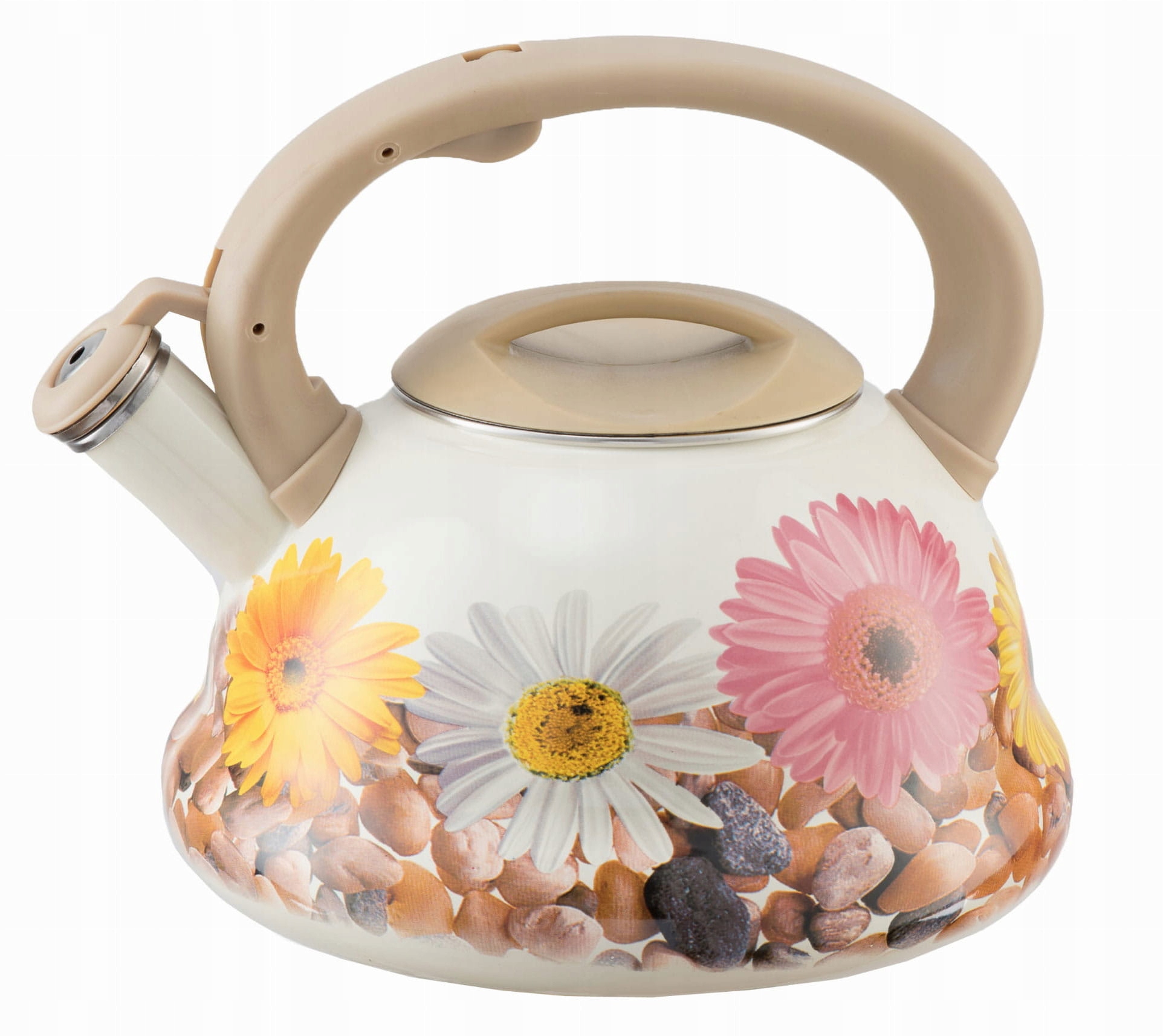 Традиційний білий емальований чайник зі СТАЛЕВИМ СВИСТКОМ з червоними маками
