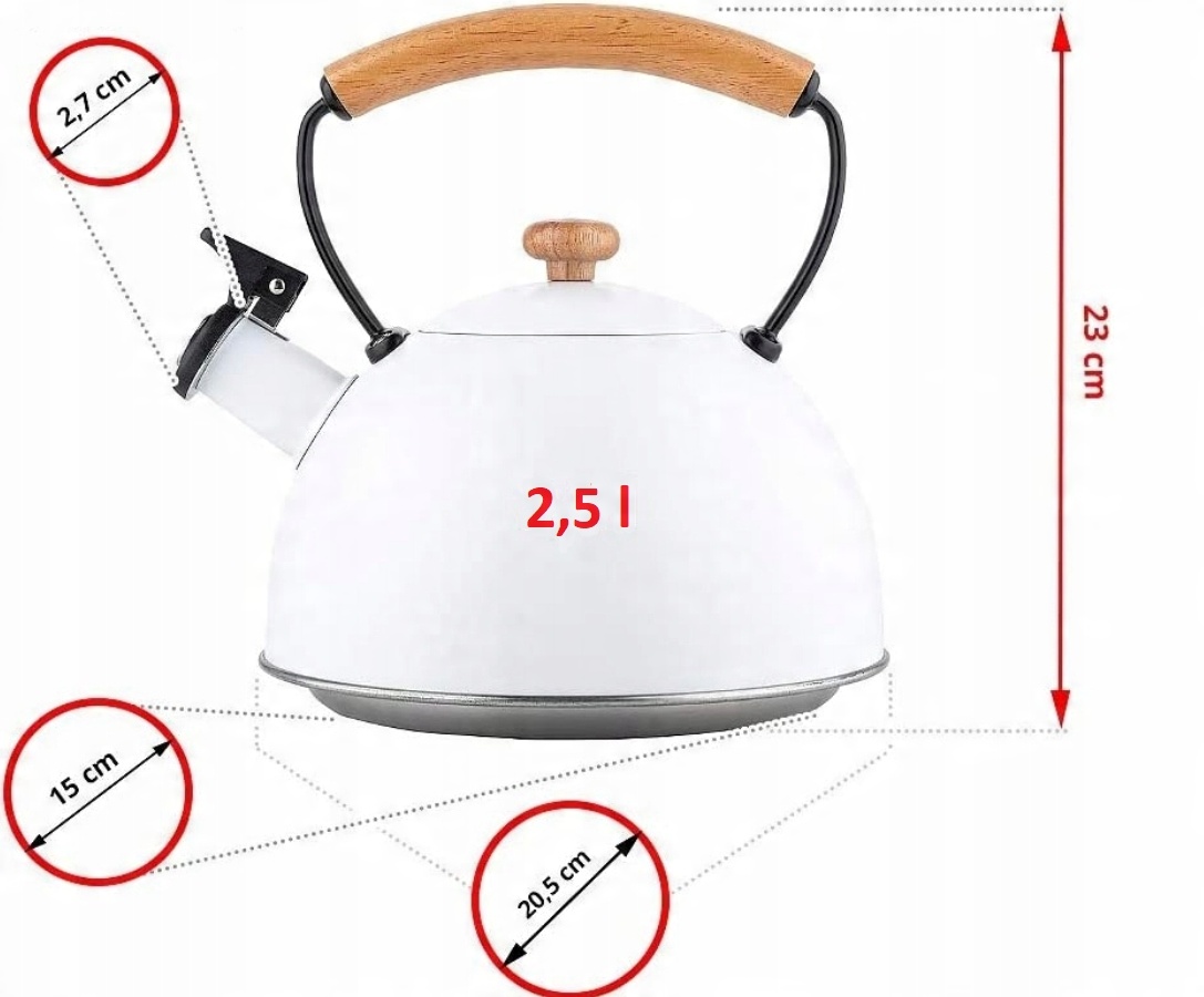 ТРАДИЦІЙНИЙ ЧАЙНИК СТАЛЕВИЙ МЕТАЛЕВИЙ ЗІ СВИСТКОМ, ГАЗОВА ІНДУКЦІЯ 2,5 Л, БІЛИЙ